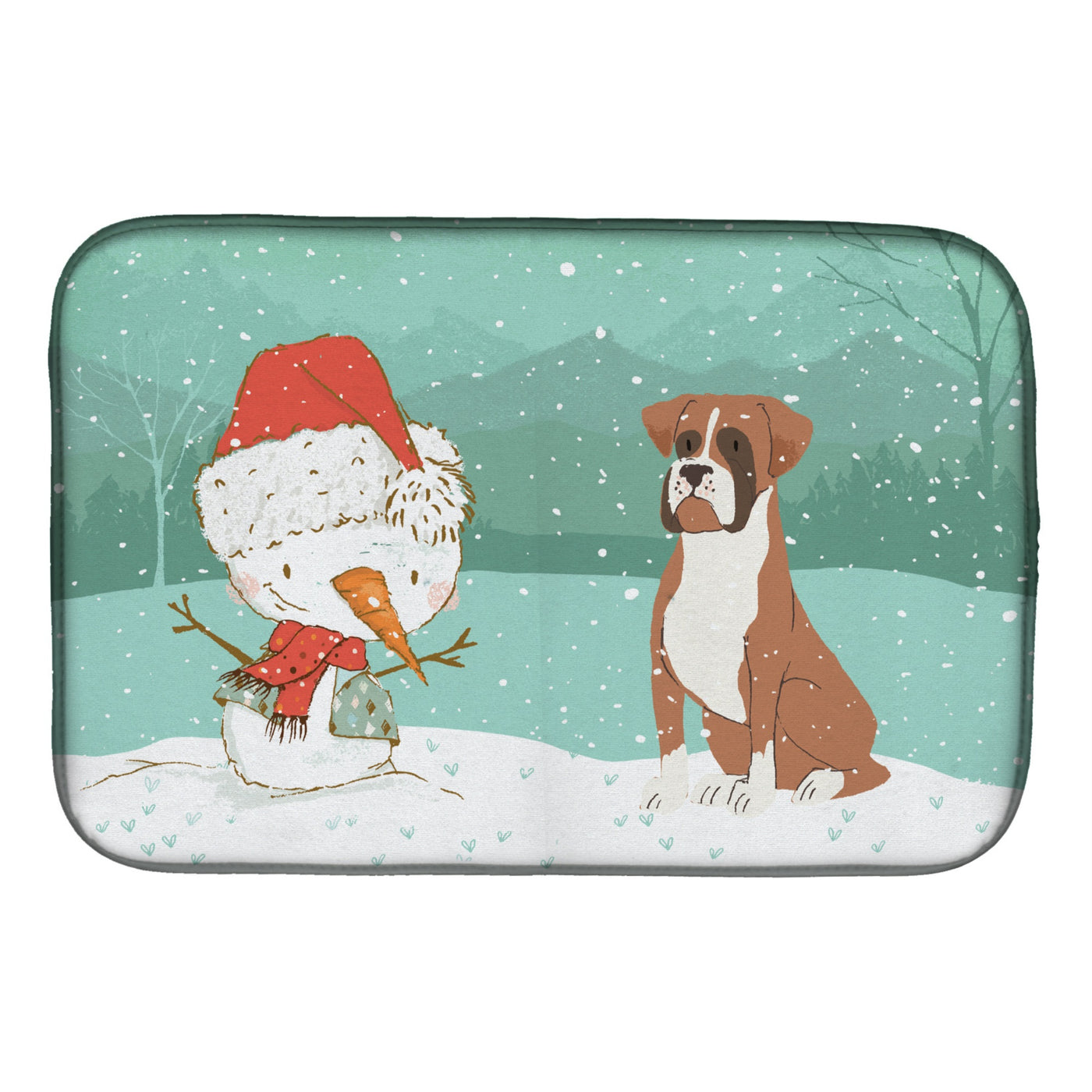 'Caroline's Treasures Fawn Boxer and Snowman Christmas Dish Drying Mat 14 x 21''