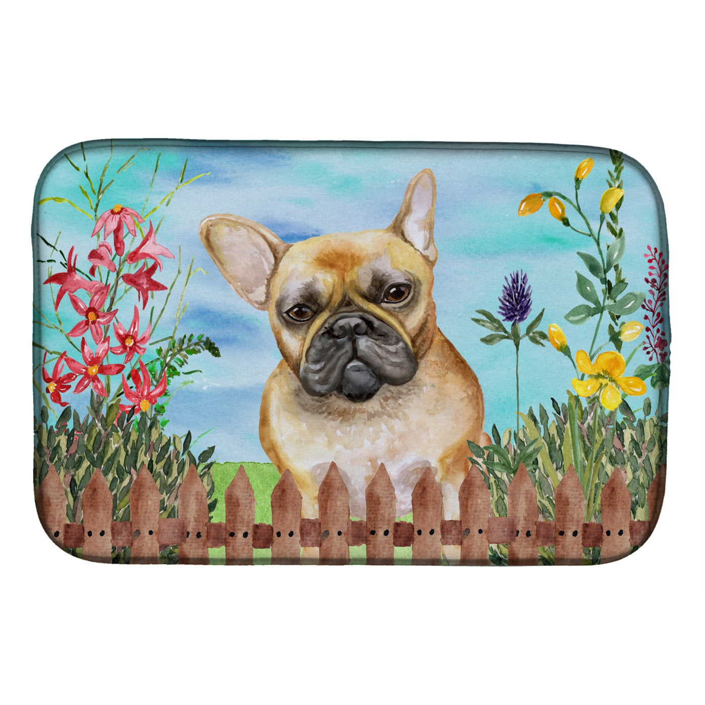 'Caroline's Treasures French Bulldog Spring Dish Drying Mat 14'''' x 21''''''