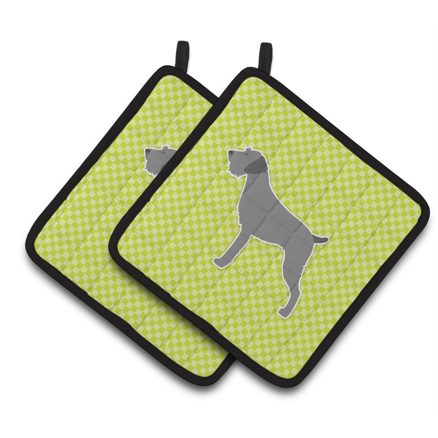 'Caroline's Treasures German Wirehaired Pointer Checkerboard green Pair of Pot Holders BB3811PTHD 7.5HX7.5W Multicolor''