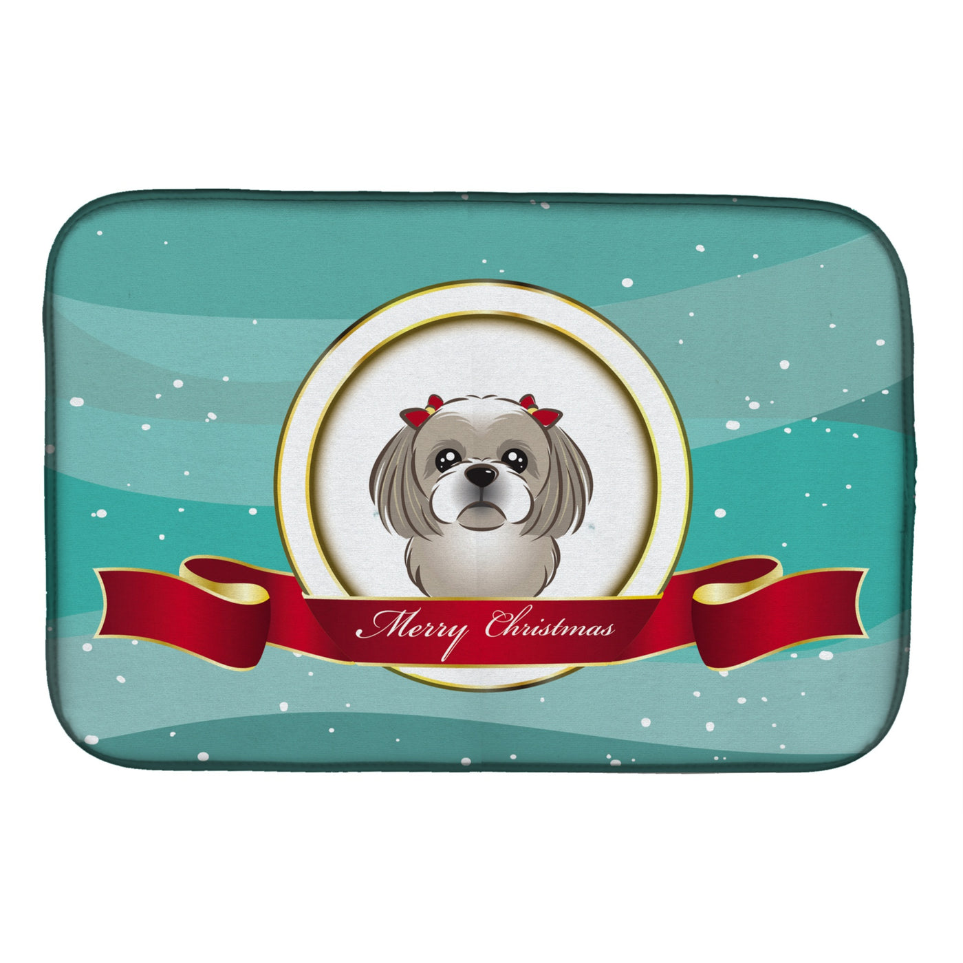 'Caroline's Treasures Gray Silver Shih Tzu Merry Christmas Dish Drying Mat 14 X 21''