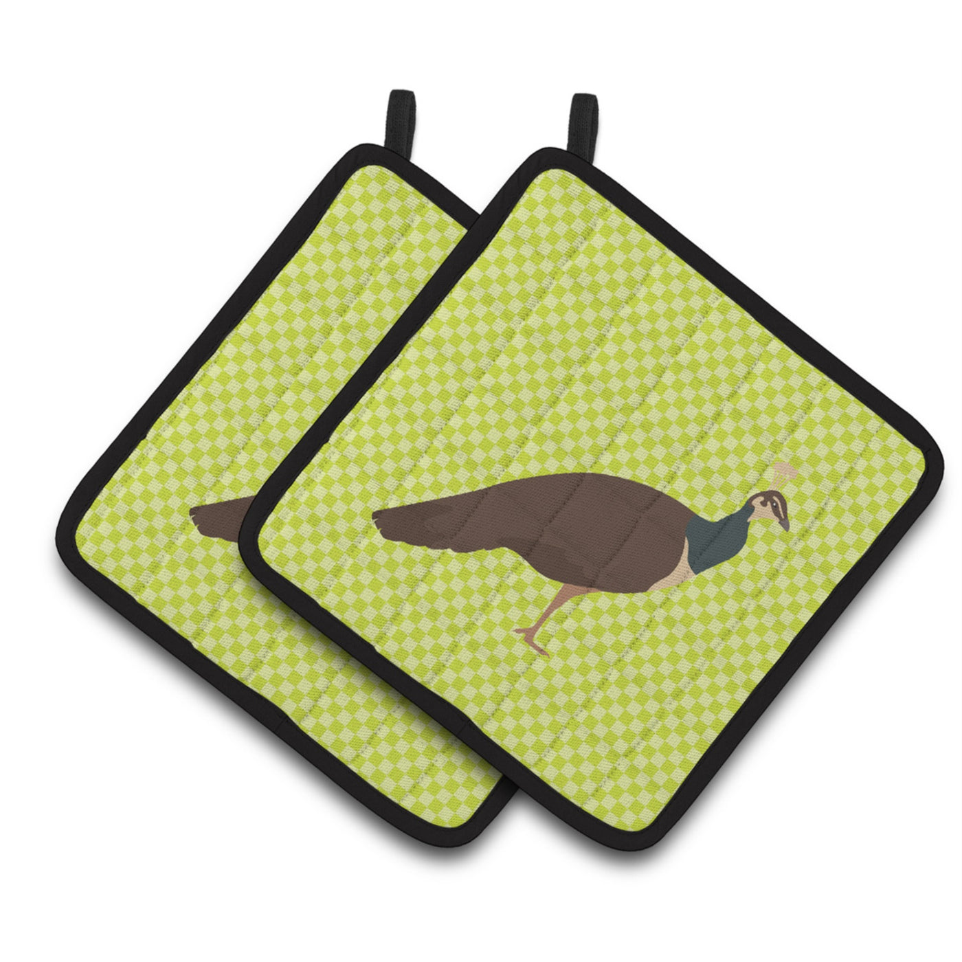 'Caroline's Treasures Indian Peahen Peafowl Green Decorated Pot Holder 7.5'''' x 7.5''''''