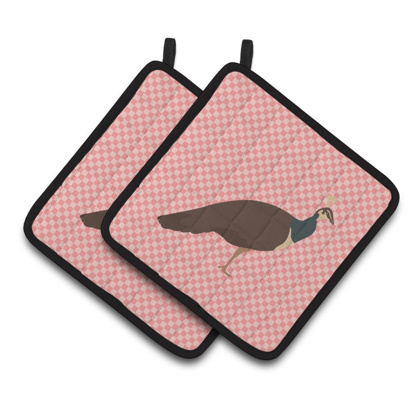 'Caroline's Treasures Indian Peahen Peafowl Pink Check Decorated Pot Holder 7.5'''' x 7.5''''''