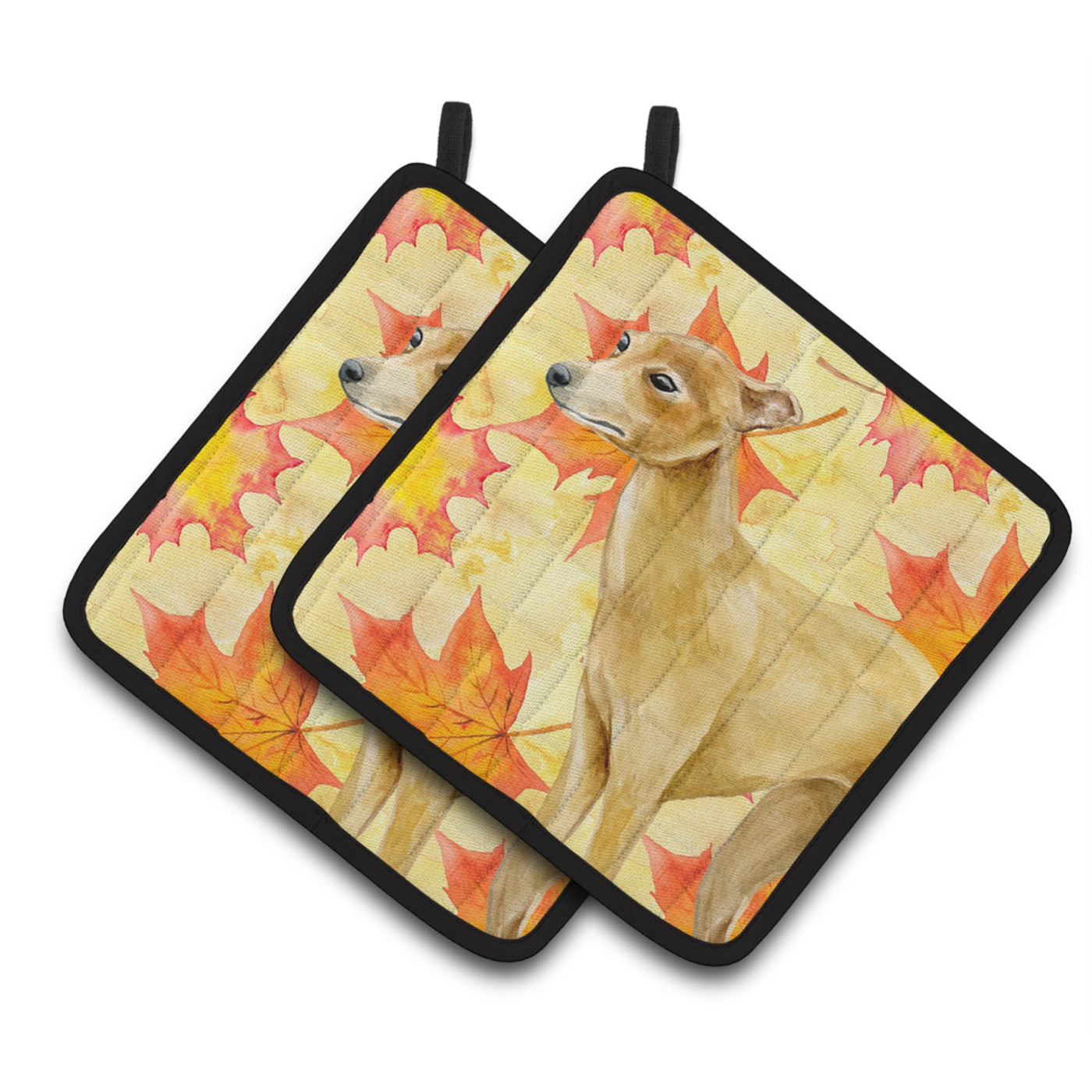 'Caroline's Treasures Italian Greyhound Decorated pot holder 7.5H x 7.5W Fall Leaves''