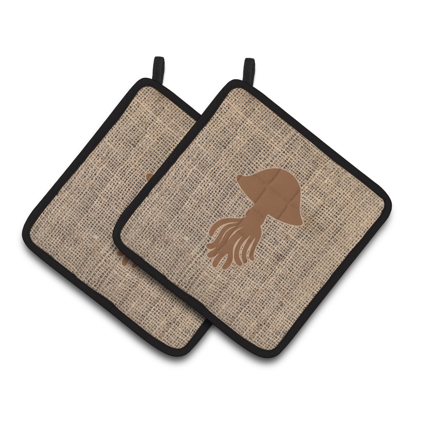 'Caroline's Treasures Jellyfish Faux Burlap & Brown Pair of Pot Holders BB1089-BL-BN-PTHD 7.5HX7.5W Multicolor''