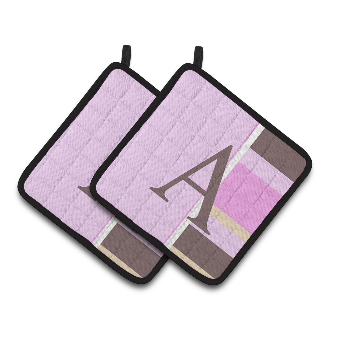 'Caroline's Treasures Letter A Monogram - Pink Stripes Pair of Pot Holders CJ1005-APTHD 7.5HX7.5W Multicolor''