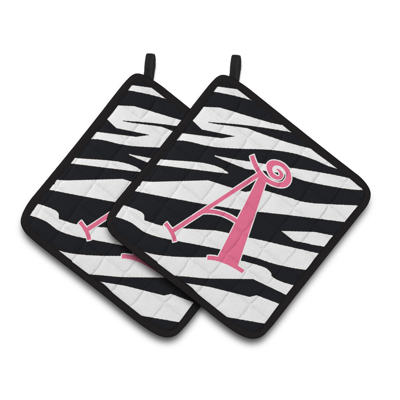 'Caroline's Treasures Letter A Monogram - Zebra Stripe & Pink Pair of Pot Holders CJ1037-APTHD 7.5HX7.5W Multicolor''