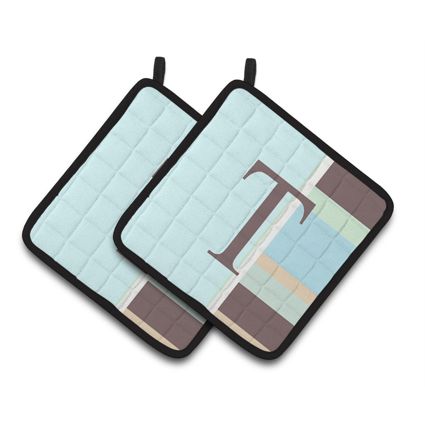 'Caroline's Treasures Letter T Initial Monogram - Blue Stripes Pair of Pot Holders CJ1003-TPTHD 7.5HX7.5W Multicolor''
