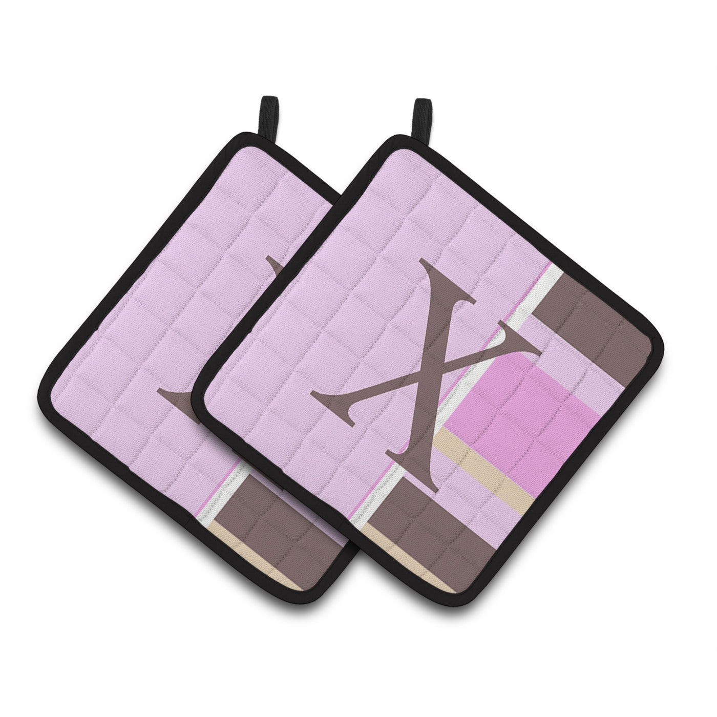 'Caroline's Treasures Letter x Initial Monogram - Pink Stripes Pair of Pot Holders CJ1005-XPTHD 7.5HX7.5W Multicolor''