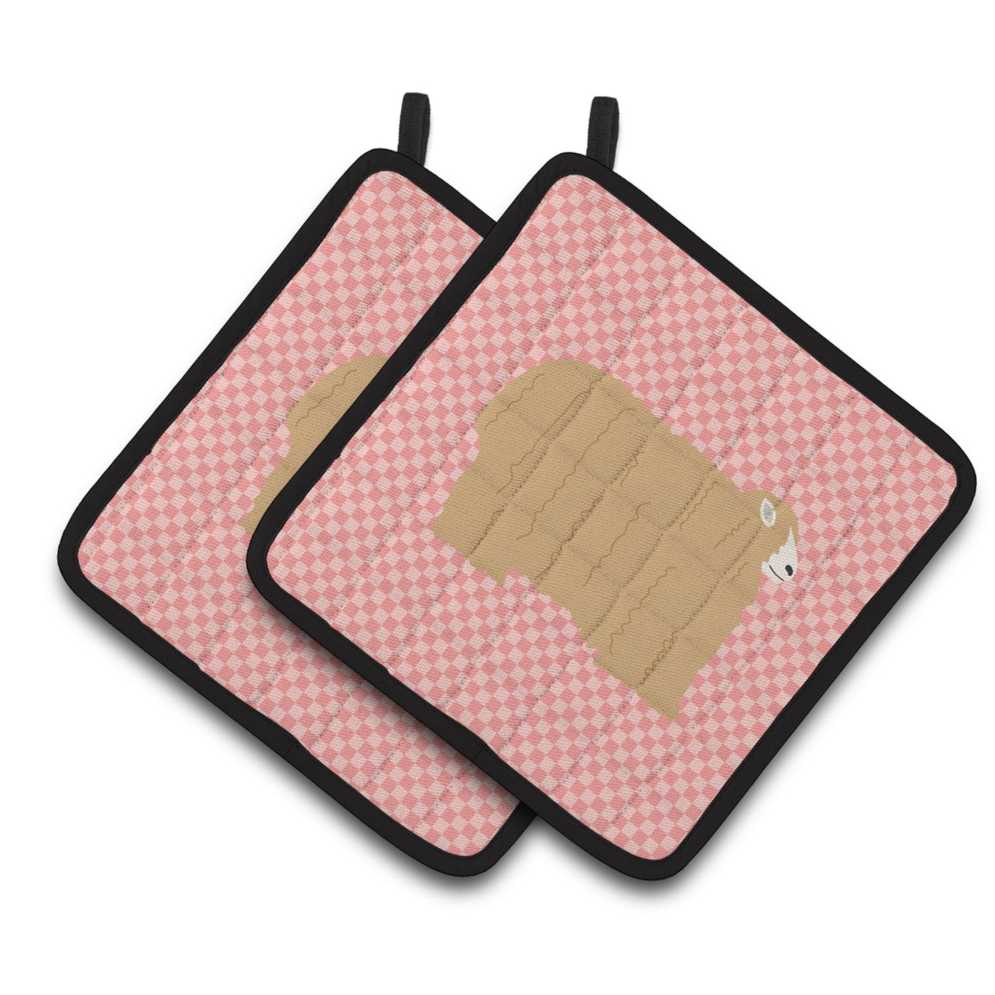 'Caroline's Treasures Lincoln Longwool Sheep Pink Check Decorated Pot Holder 7.5'''' x 7.5''''''