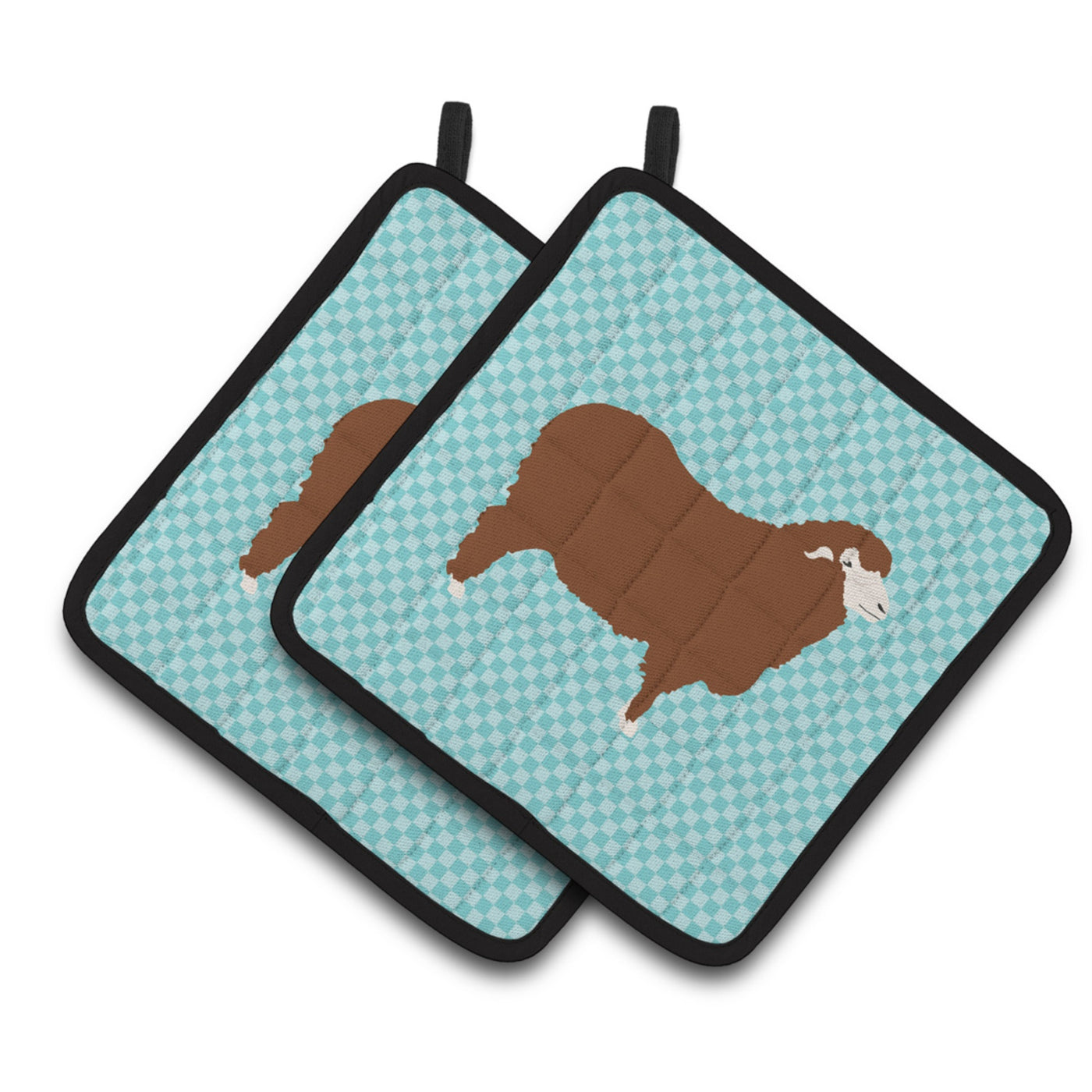 'Caroline's Treasures Merino Sheep Blue Check Decorated Pot Holder 7.5'''' x 7.5''''''