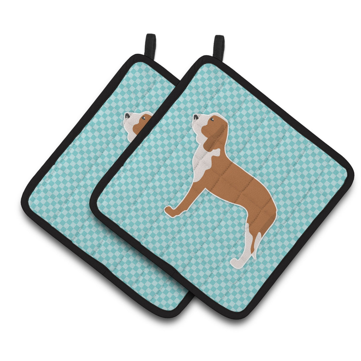 'Caroline's Treasures Spanish Hound Checkerboard Blue Pair of Pot Holders BB3691PTHD 7.5HX7.5W Multicolor''