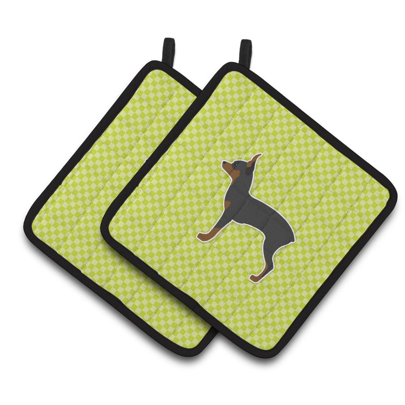 'Caroline's Treasures Toy Fox Terrier Checkerboard green Pair of Pot Holders BB3787PTHD 7.5HX7.5W Multicolor''