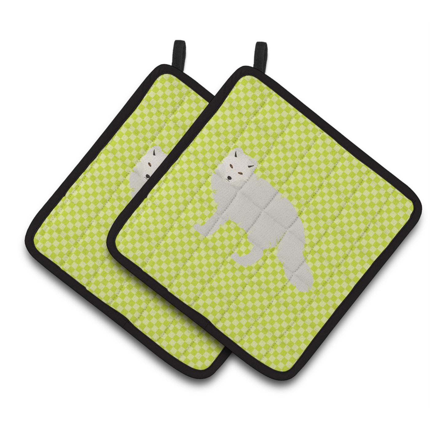'Caroline's Treasures White Arctic Fox Green Decorated Pot Holder 7.5'''' x 7.5''''''