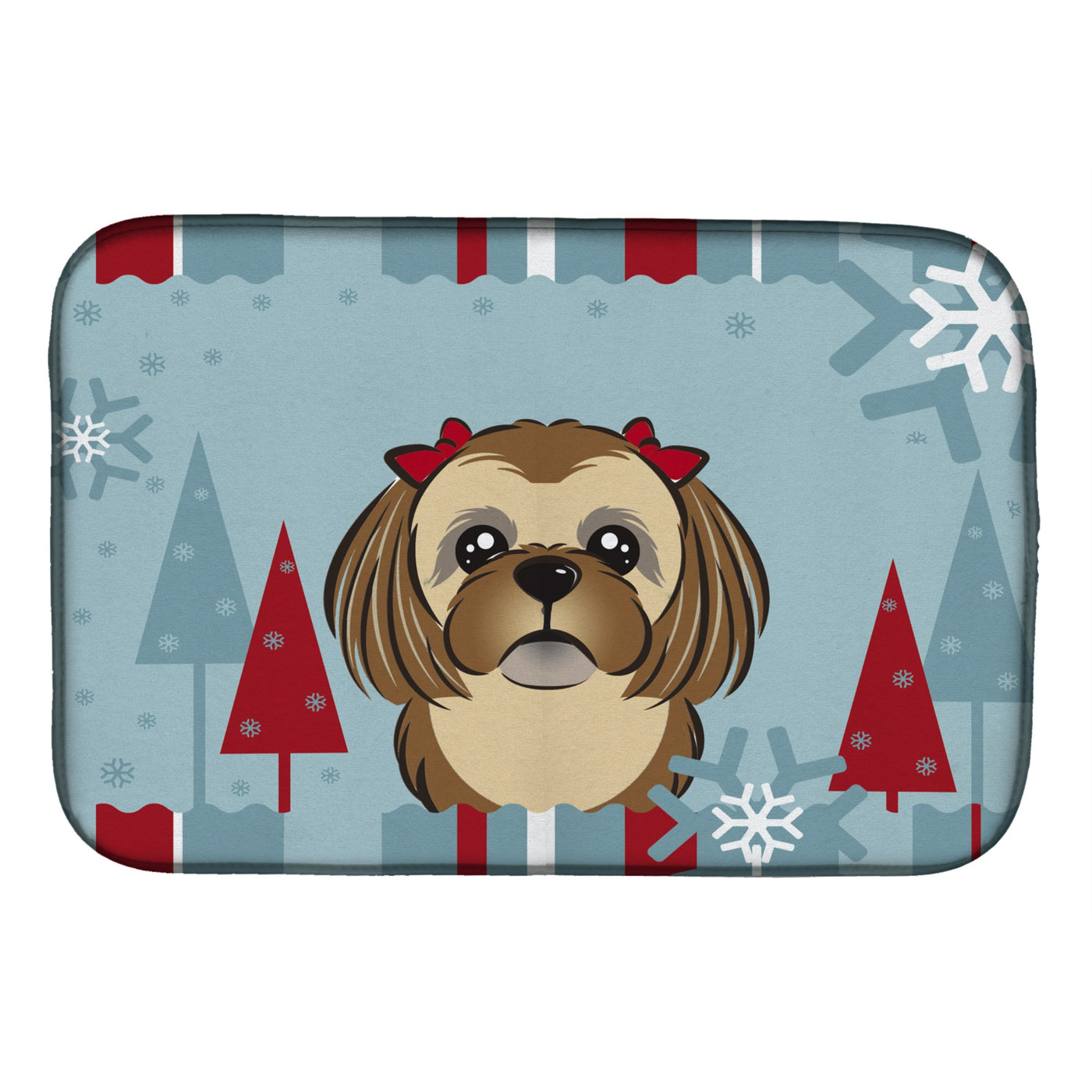 'Caroline's Treasures Winter Holiday Chocolate Brown Shih Tzu Dish Drying Mat 14'''' x 21''''''