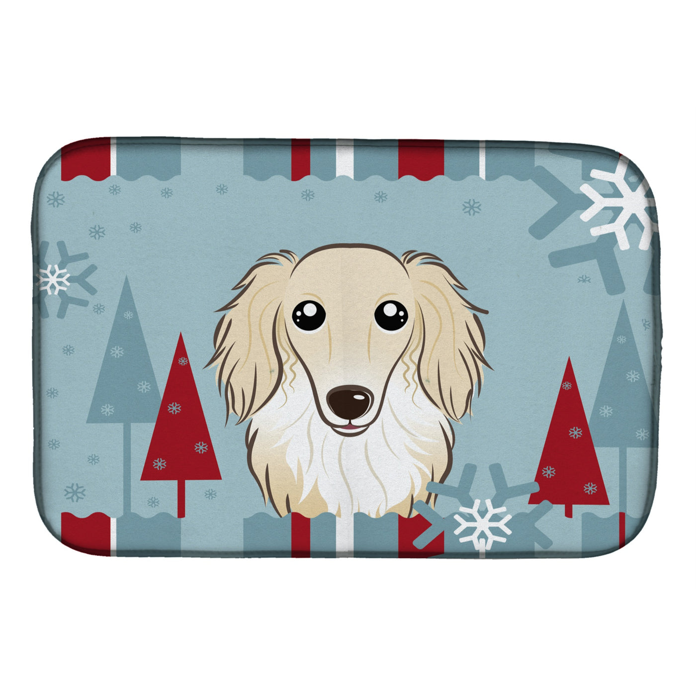 'Caroline's Treasures Winter Holiday Longhair Crme Dachshund Dish Drying Mat 14'''' x 21''''''