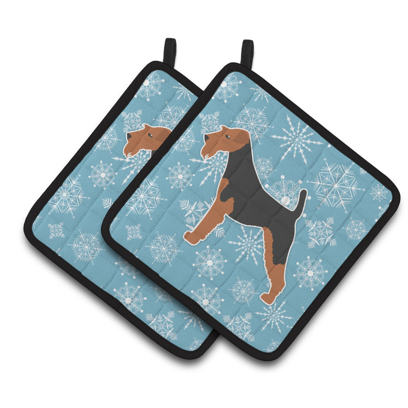 'Caroline's Treasures Winter Snowflake Welsh Terrier Pair of Pot Holders BB3485PTHD 7.5HX7.5W Multicolor''
