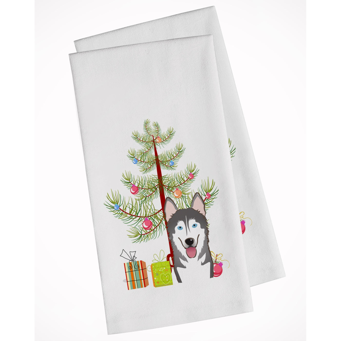 Christmas Tree and Alaskan Malamute White Kitchen Towel Set of 2