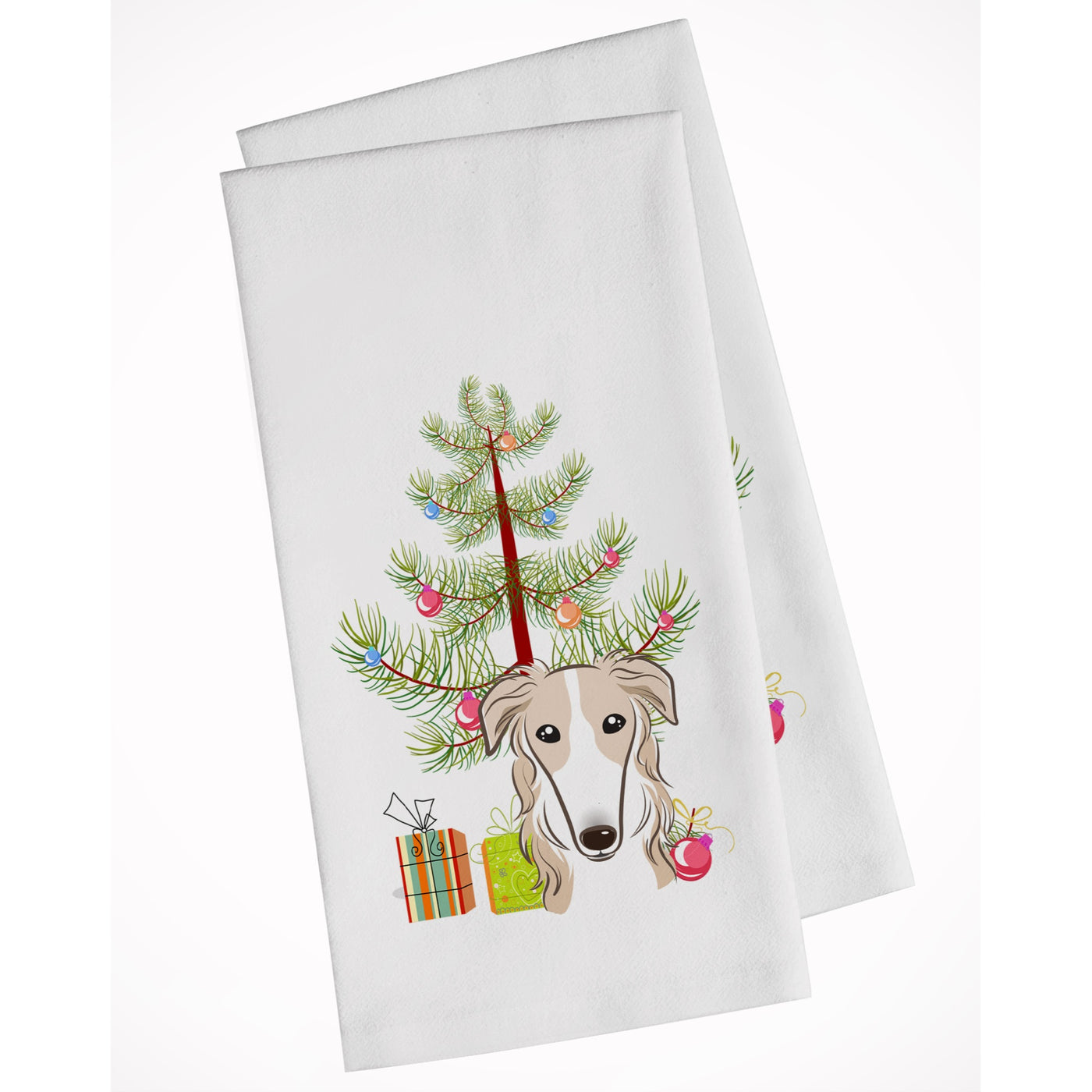 Christmas Tree and Borzoi White Kitchen Towel Set of 2