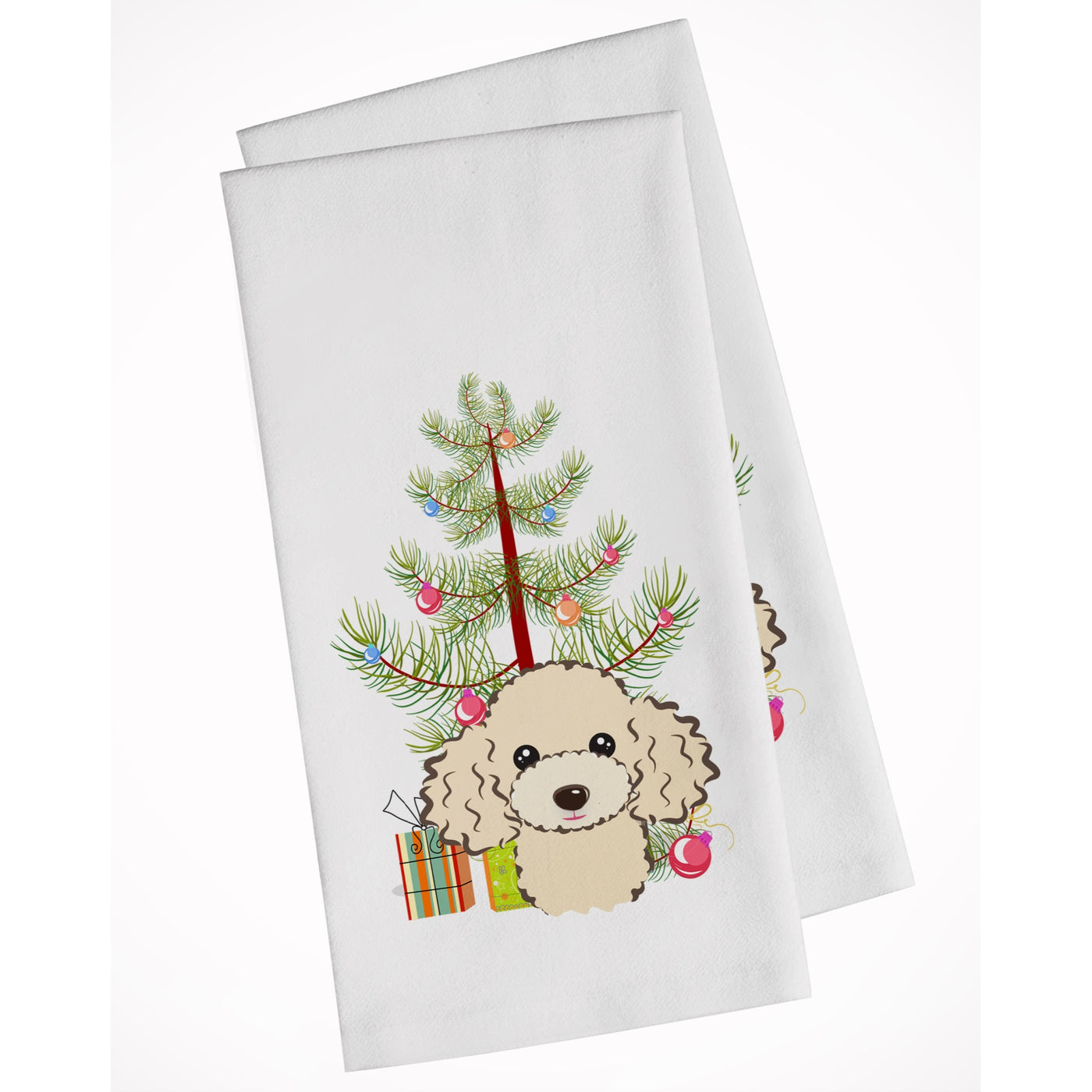 Christmas Tree and Buff Poodle White Kitchen Towel Set of 2