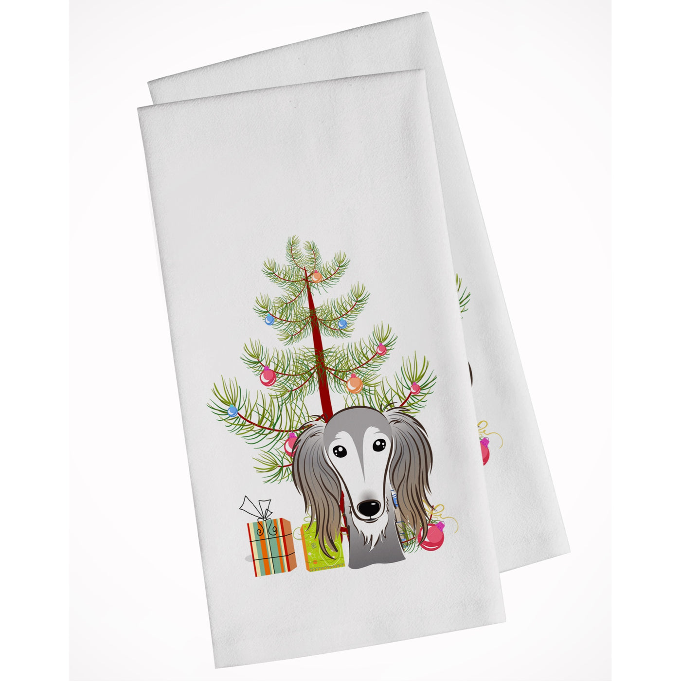 Christmas Tree and Saluki White Kitchen Towel Set of 2