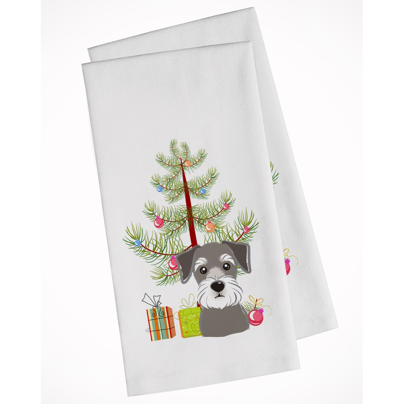 Christmas Tree and Schnauzer White Kitchen Towel Set of 2