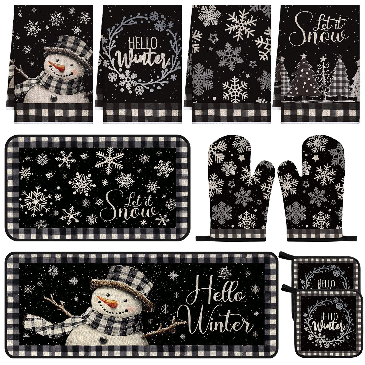 Fanfanwin 10 Pcs Winter Oven Mitts Pot Holders Kitchen Rug and Towel Set Absorbent Towels for Baking Cooking BBQ Gifts Kitchen D