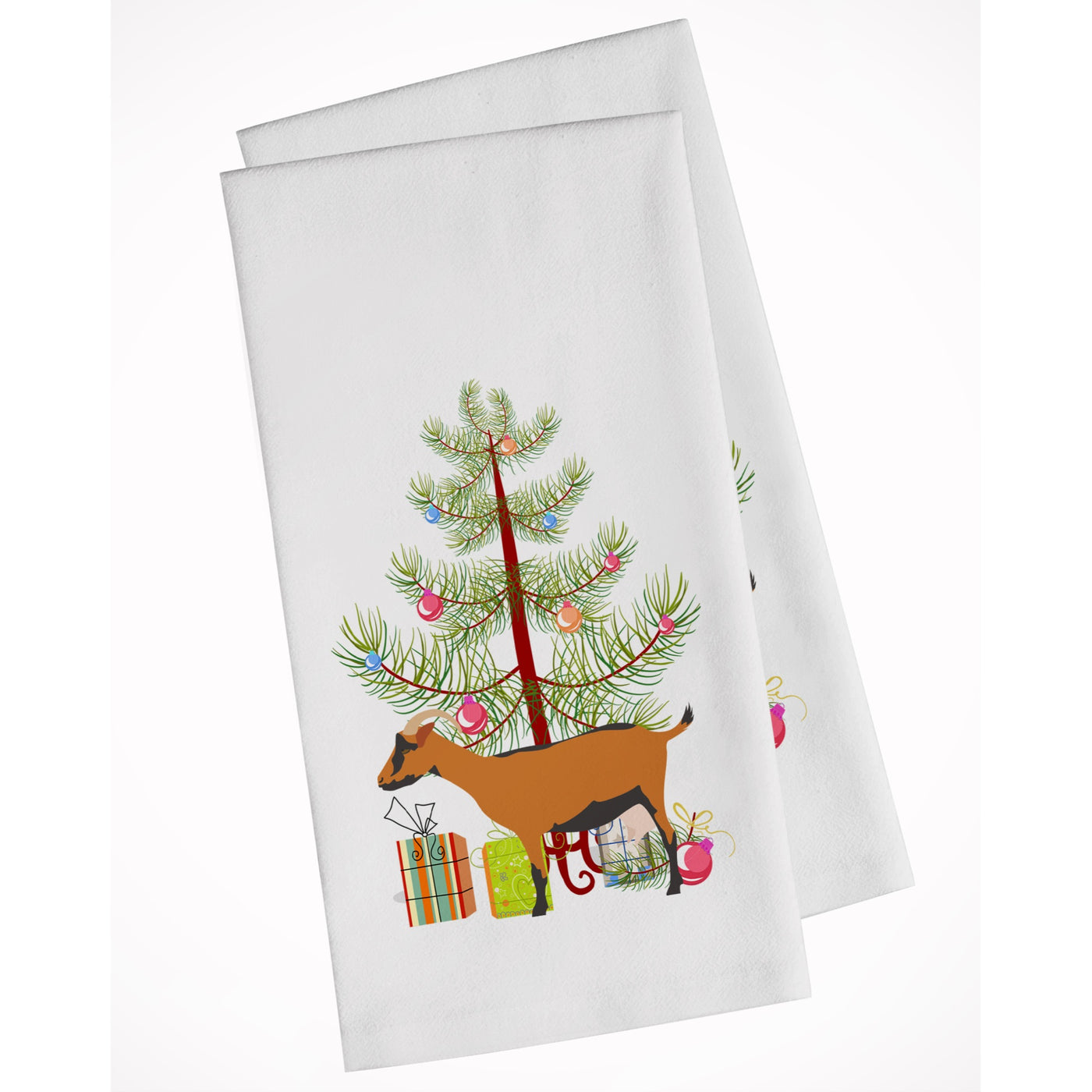 Oberhasli Goat Christmas White Kitchen Towel Set of 2