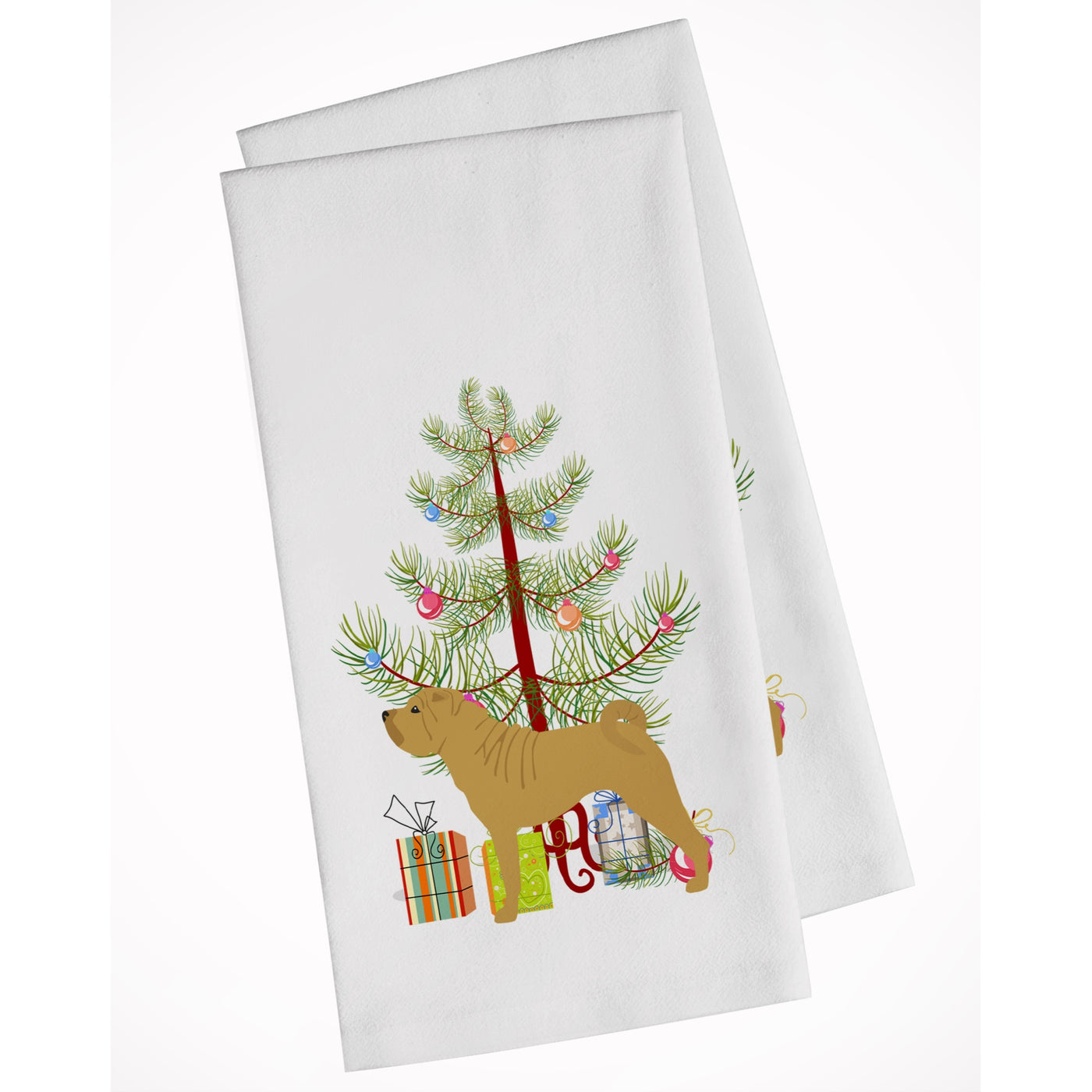 Shar Pei Merry Christmas Tree White Kitchen Towel Set of 2