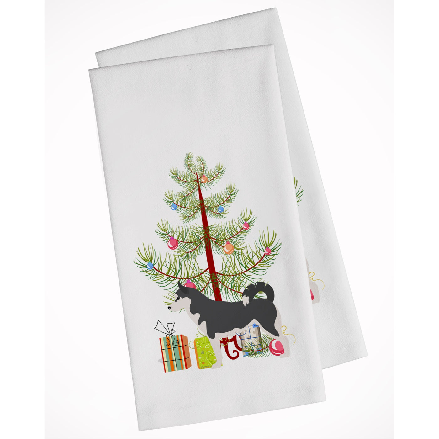 Siberian Husky Merry Christmas Tree White Kitchen Towel Set of 2