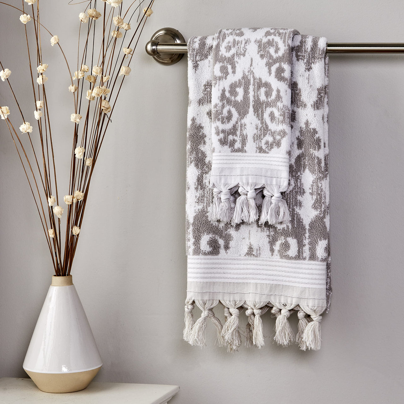 • Q: What kind of design does the towel feature? A: The towel features a stylish fringe design, adding a decorative touch while still being functional.