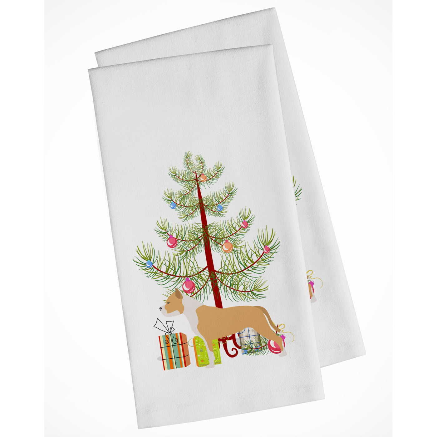 Staffordshire Bull Terrier Merry Christmas Tree White Kitchen Towel Set of 2