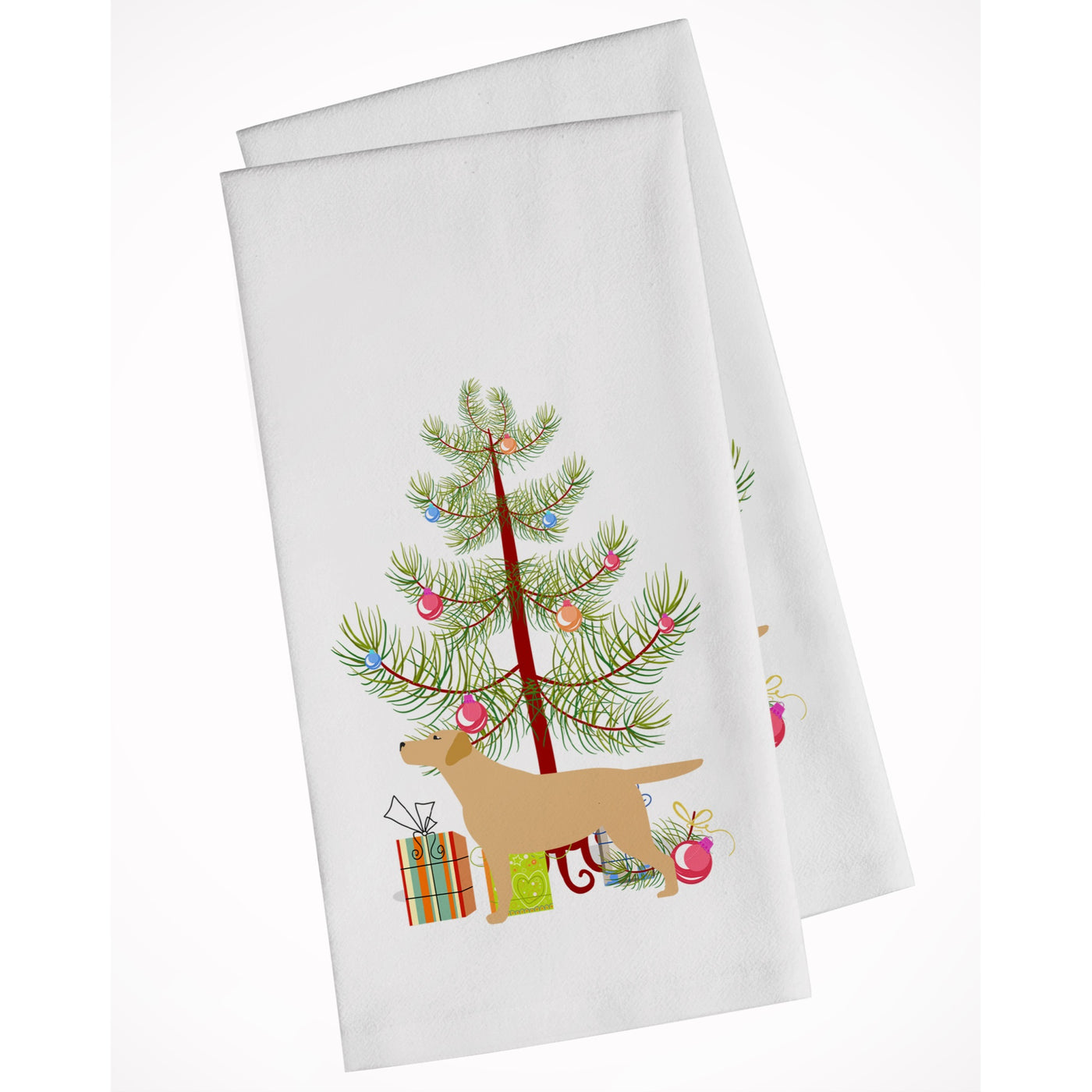 Yellow Labrador Retriever Merry Christmas Tree White Kitchen Towel Set of 2