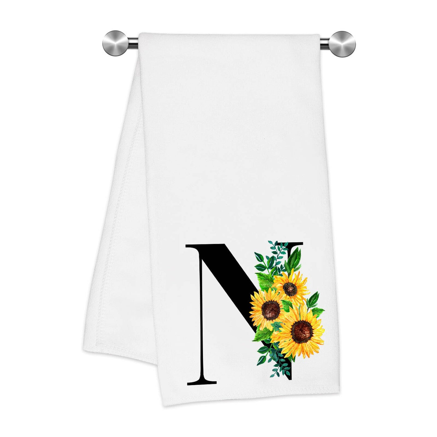 Z-synka Monogrammed Sunflower Hand Towels,Ini-tial N Tea Towel Letter Kitchen Towels,Sunflower Gifts for Women,Monogram Dish Tow
