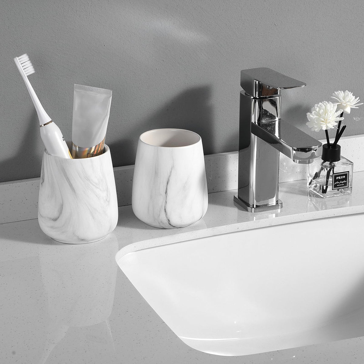 - Q: Is the design of the toothbrush holder suitable for all bathroom decors? A: Yes, the simple and stylish white marbled design complements various bathroom aesthetics.