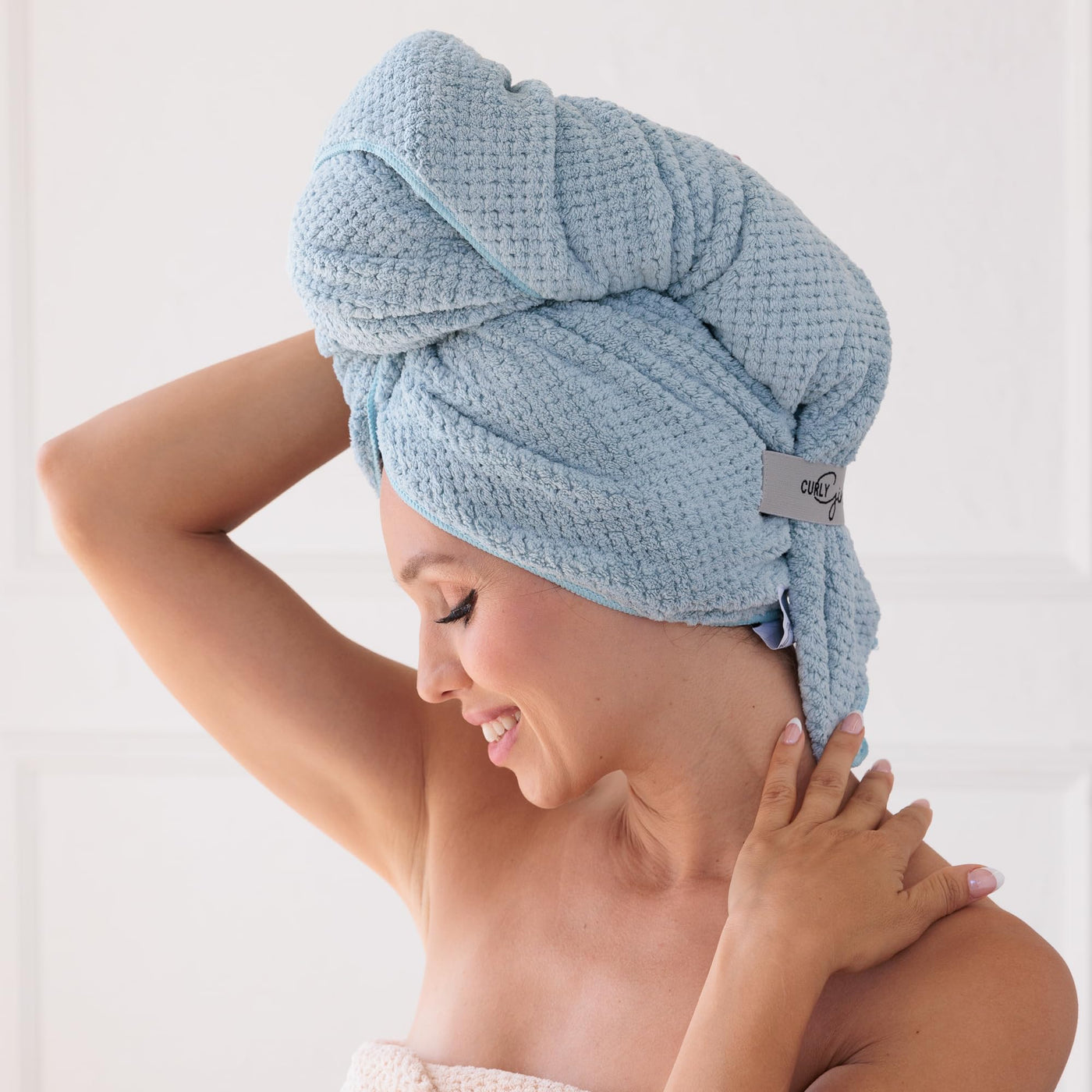 - Q: How does the microfiber material benefit my hair? A: The microfiber material is super absorbent, allowing it to dry your hair quickly while reducing frizz and preventing heat damage.