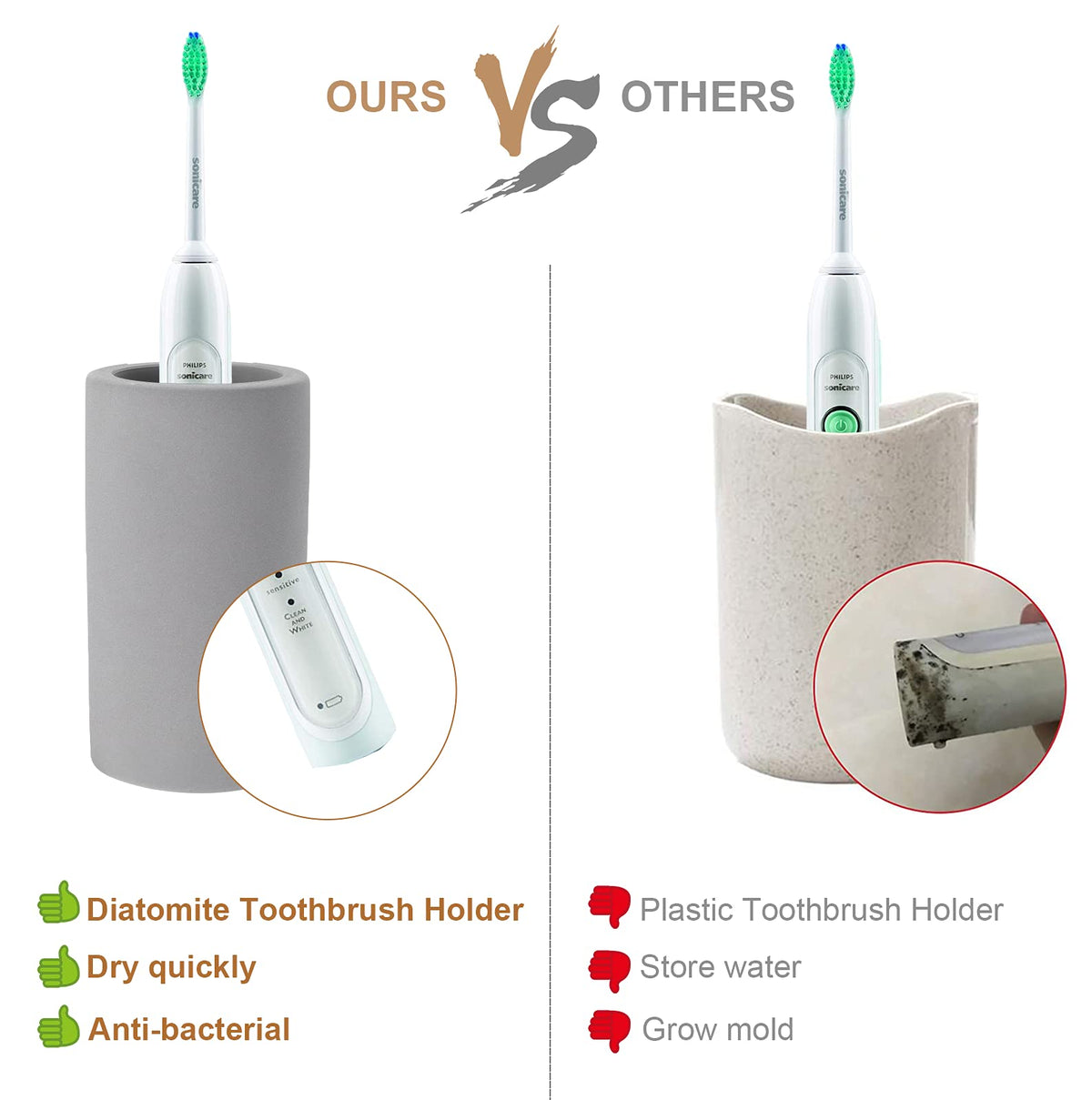Diatomite Toothbrush Holder, Bojdopie Water Absorption Quick Drying Bathroom Countertop Organizer, Stand Cup For Toothpaste Make