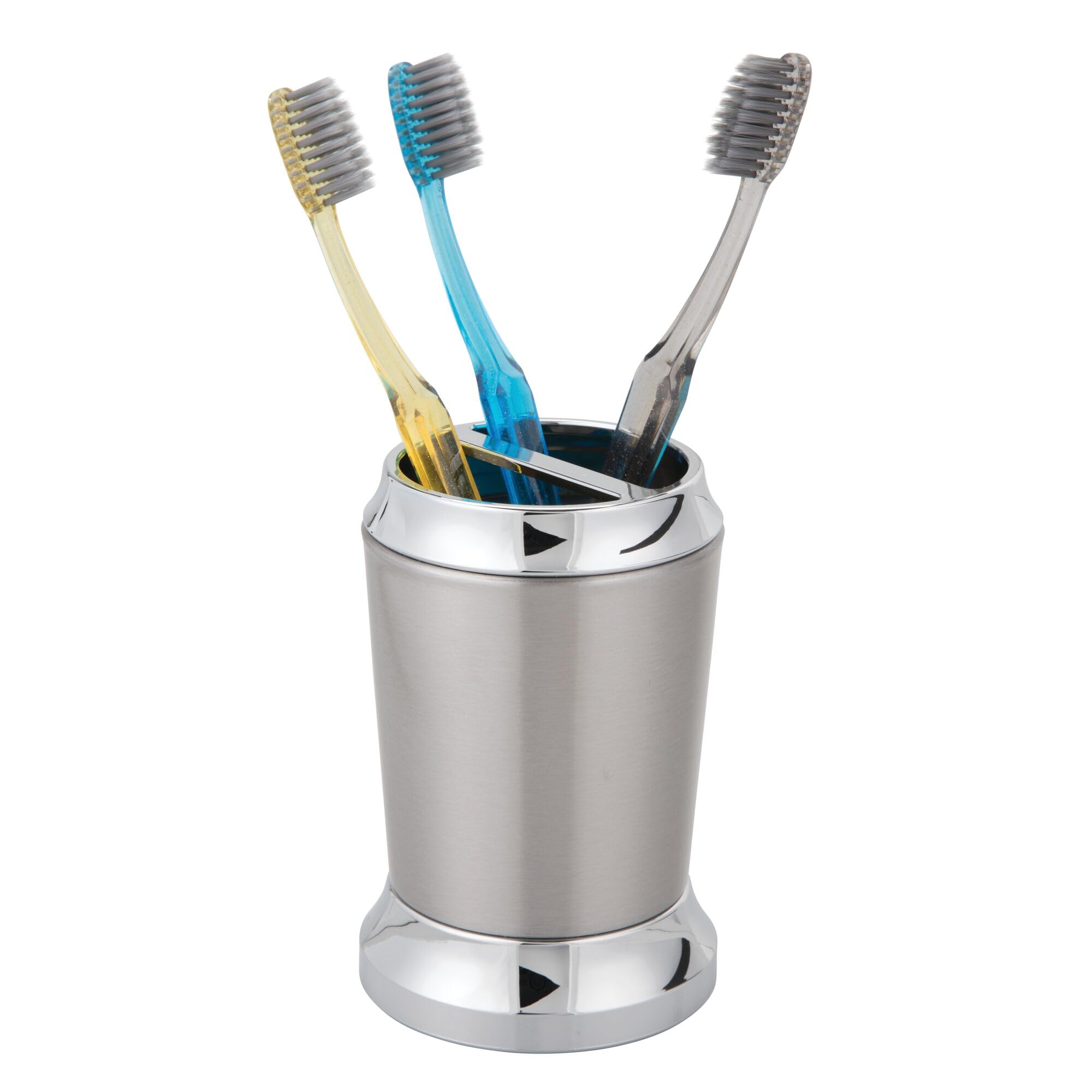 Idesign Stainless Steel Toothbrush Holder, The Preston Collection - 3'' X 3'' X 4.5 , Brushed & Chrome Split Finish