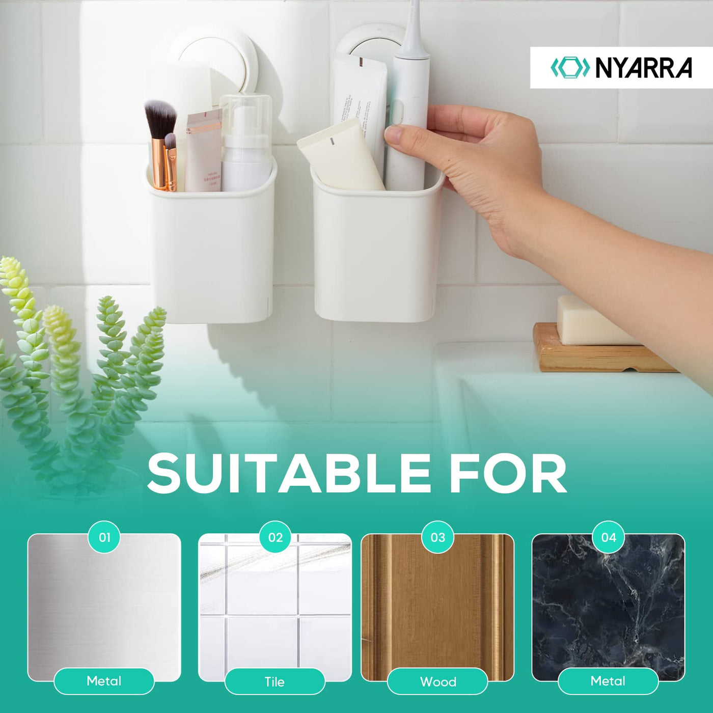 Nyarra Toothbrush Holder For Bathroom, Easy One Push Wall Mount With Powerful Vacuum Suction Cup, Multifunctional Organizer Whit