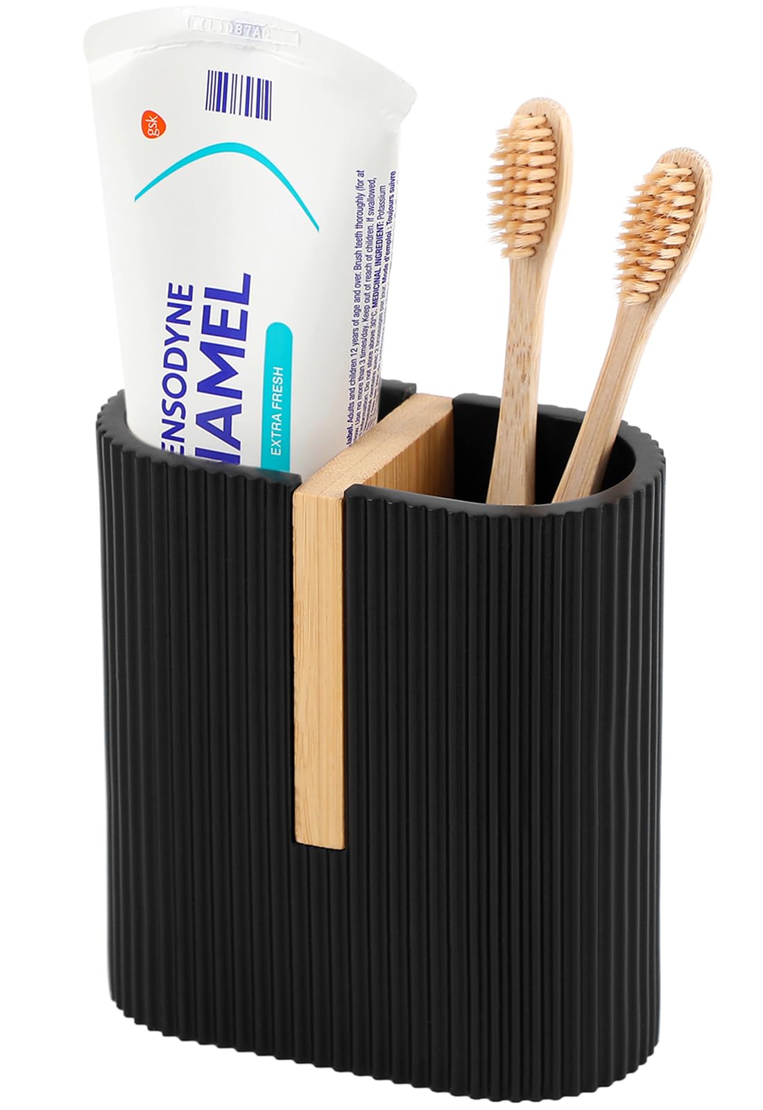Rejomiik Matte Black Toothbrush Holders Electric Toothbrush Holder For Bathrooms, Bamboo Tooth Brushing And Toothpaste Storage O