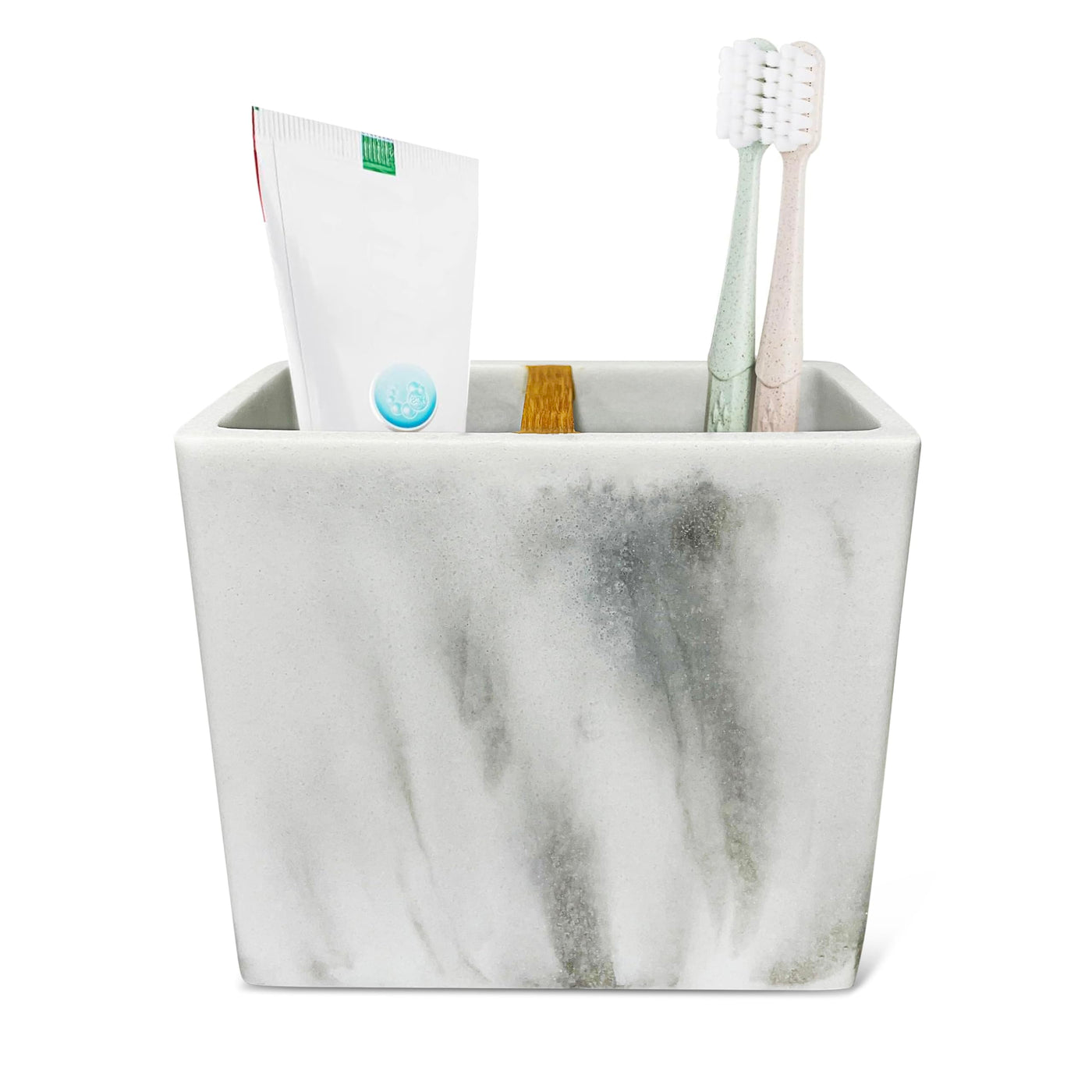 Santorini Resin Toothbrush Holder - Bathroom Accessories For Countertop Sink Organizer - Cute Stand For Kids Toothbrushes