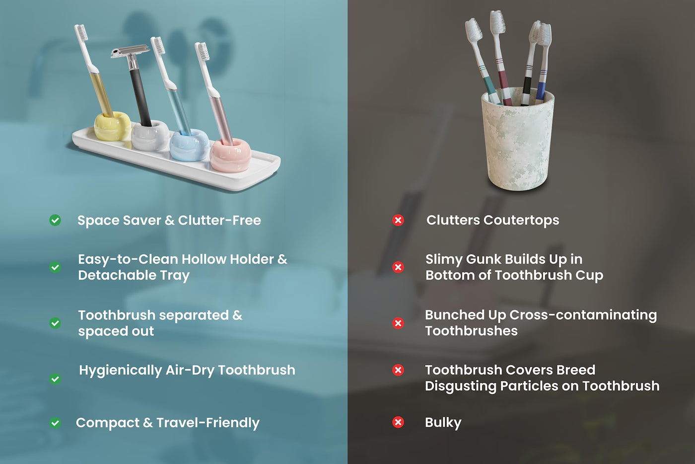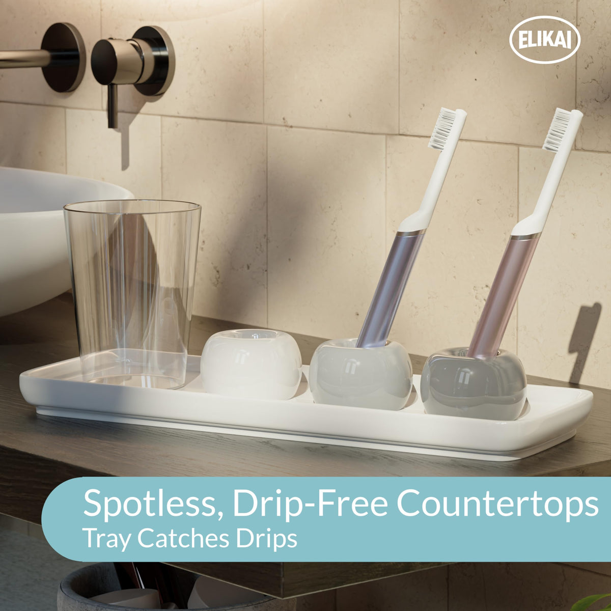 - Q: How does the ELIKAI Toothbrush Holder prevent water buildup? A: The holder features holes at the bottom that allow water to seep through, which is then caught by the tray, preventing any buildup on your countertops.