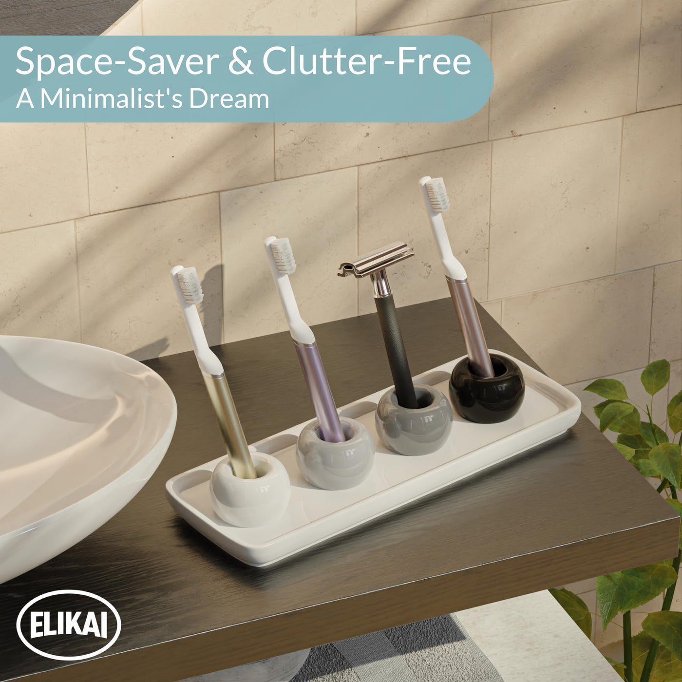 - Q: How many toothbrushes can the ELIKAI Toothbrush Holder hold? A: The ELIKAI Toothbrush Holder set includes four separate holders, allowing you to store up to four toothbrushes.