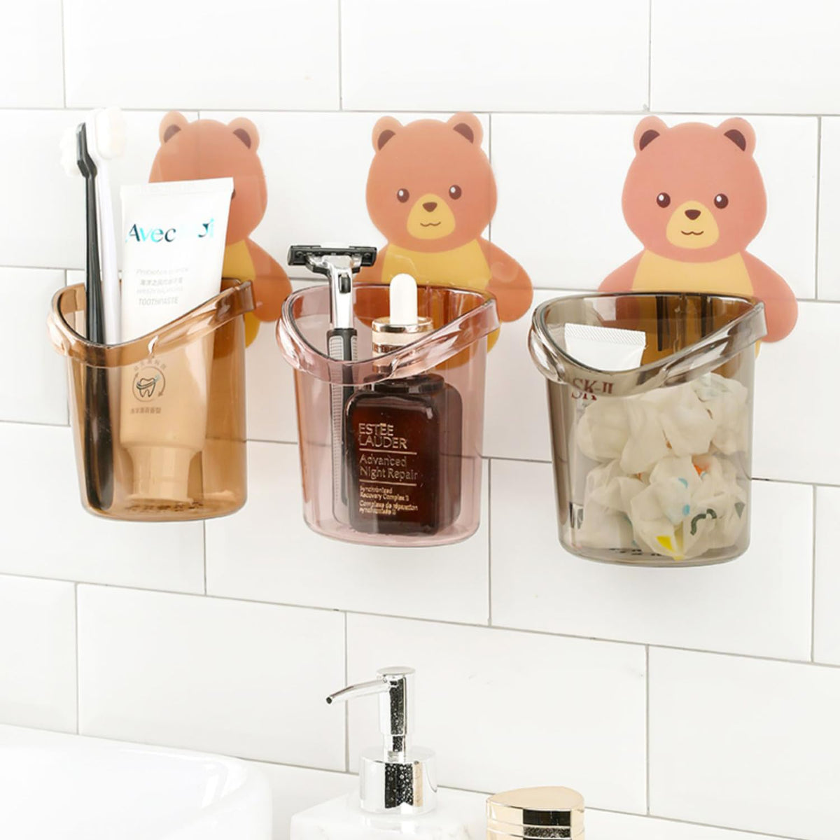 Wolpin Toothbrush Holder (Set Of 3 Pcs) Plastic Stand For Toothpaste, Comb, Brush, Cream, Lotion Kids Bathroom Cup Drain Waterproof Self-Adhesive, Teddy Bear Home Organisation, Space Saver, Multi-Use: This Self-Adhesive Toothbrush Holders Container Will Help You Organise The Clutters To Make Your Bathroom, Kitchen, And Dressing Room Neat And Tidy. Can Be Wall-Mounted On A Smooth And Polished Surface Like Ceramic Tiles, Glass And Mirror. No Smell, Safe To Use.