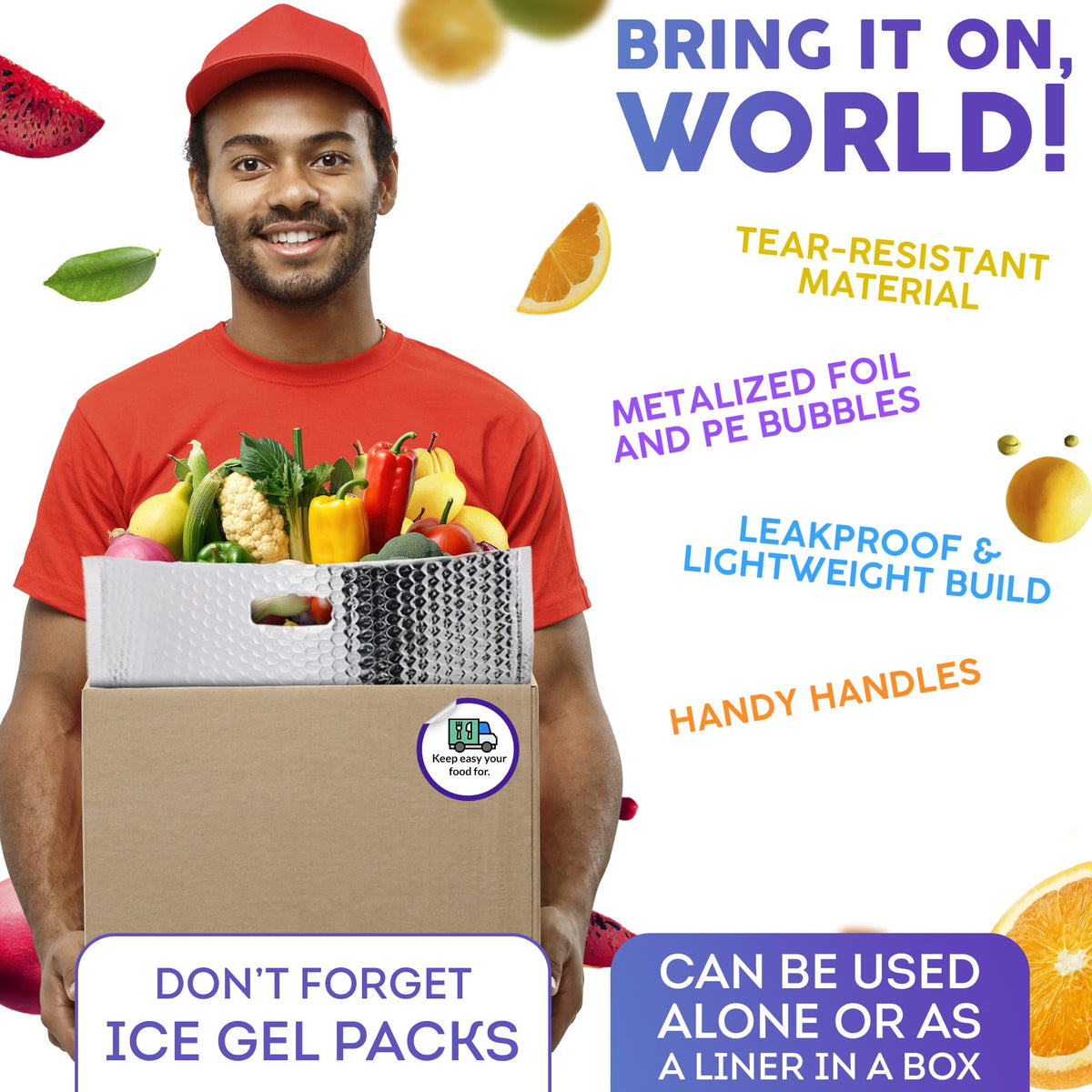 APQ Thermal Bags with Handle 8 x 8 x 8 Pack of 50 Insulated Thermal Bubble Bags Metalized Foil cold Shipping Package Packaging Bags for Shipping Frozen Products Bubble Shipping Bags for Food(D0102HgJZcW)