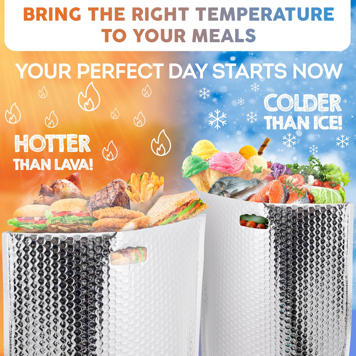 • Q: Can these bags be used for hot items? A: Yes, the insulated bags can be used for both hot and cold items, keeping your food at the right temperature.