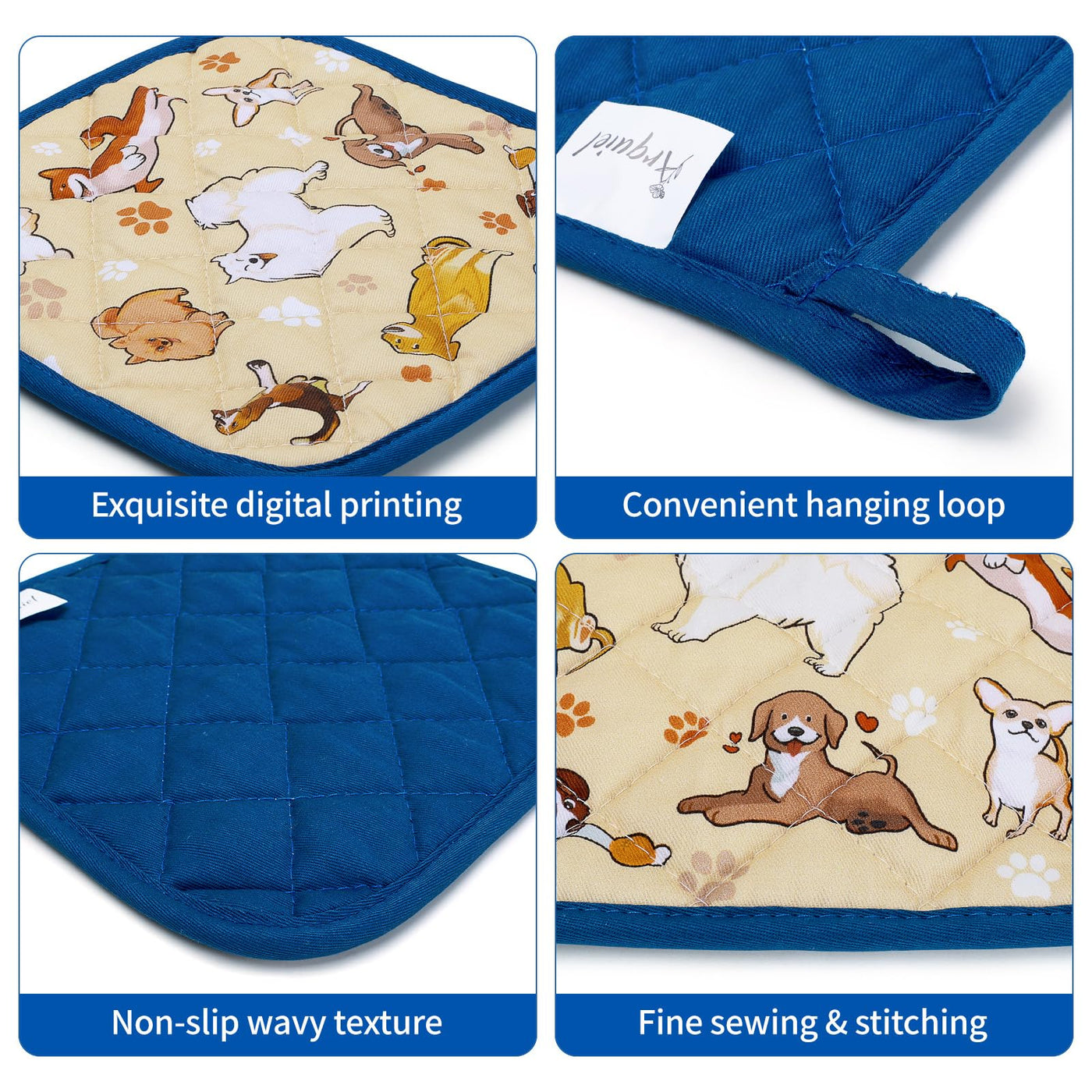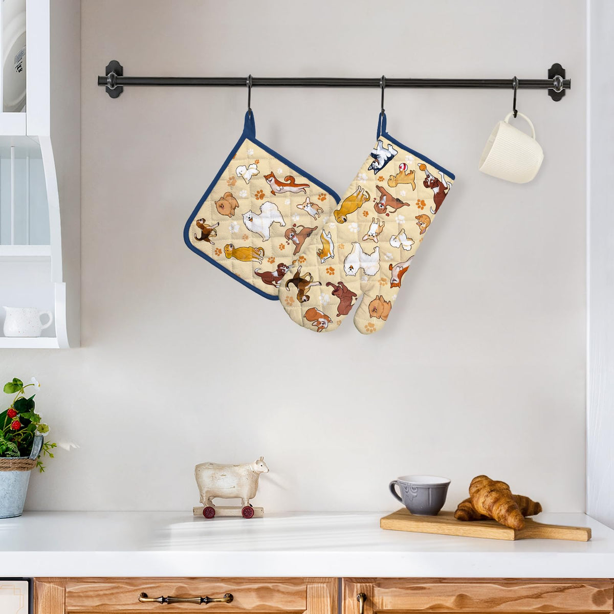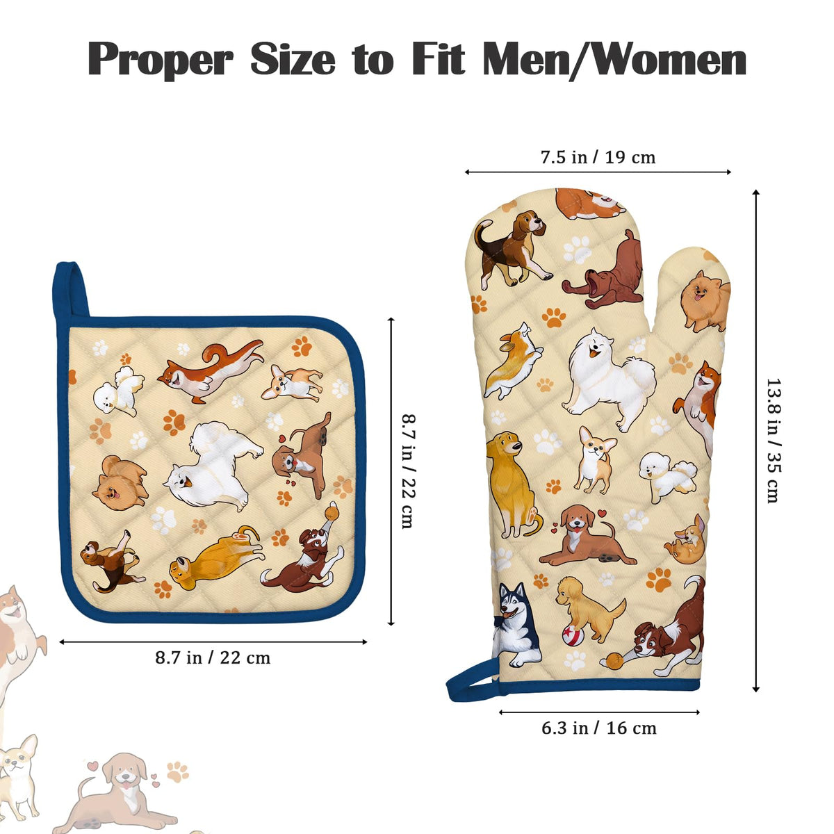 Arquiel Dogs Oven Mitts And Pot Holders Sets 100% Cotton Heat Resistant, Extra Long Oven Gloves Potholder For Kitchen Cooking Ba