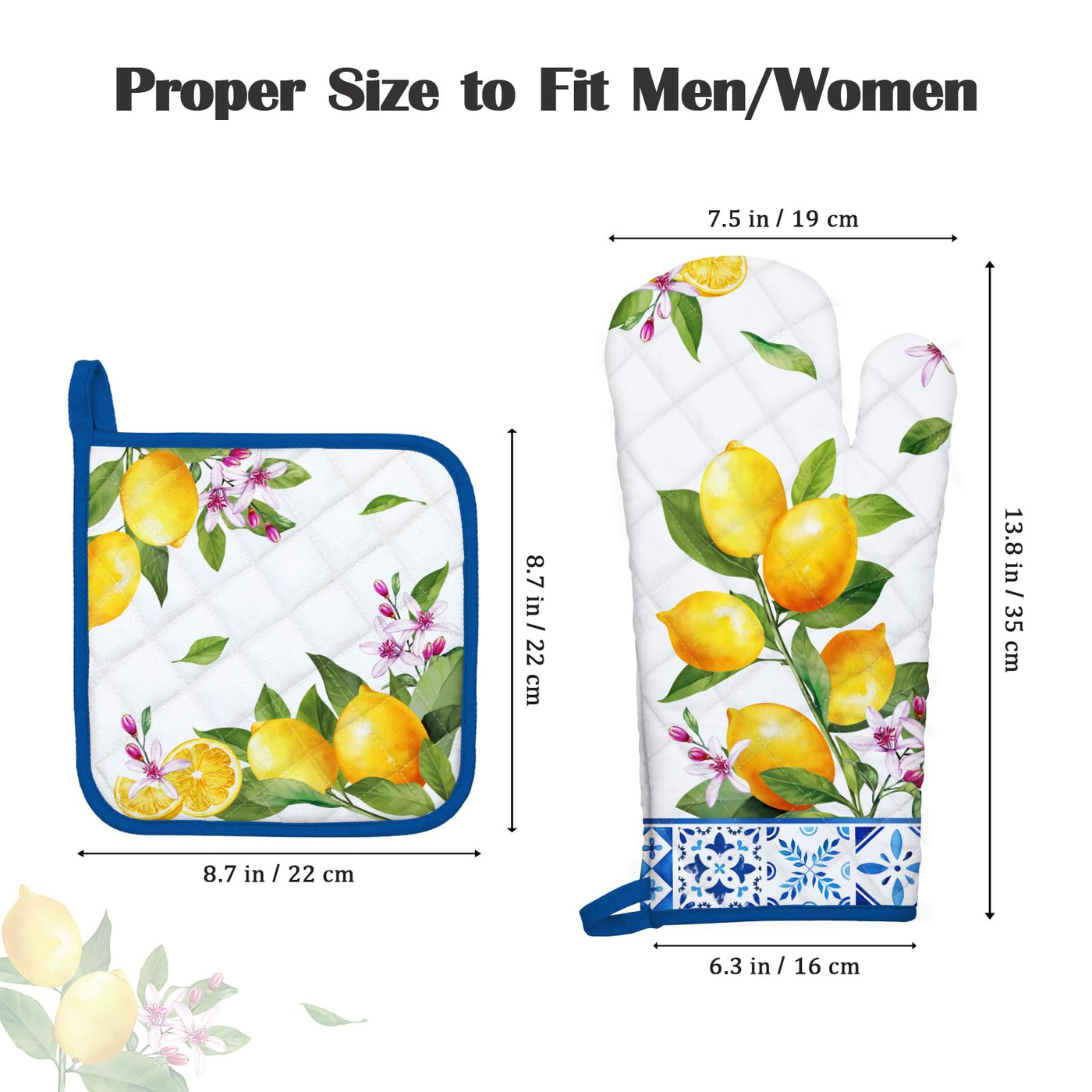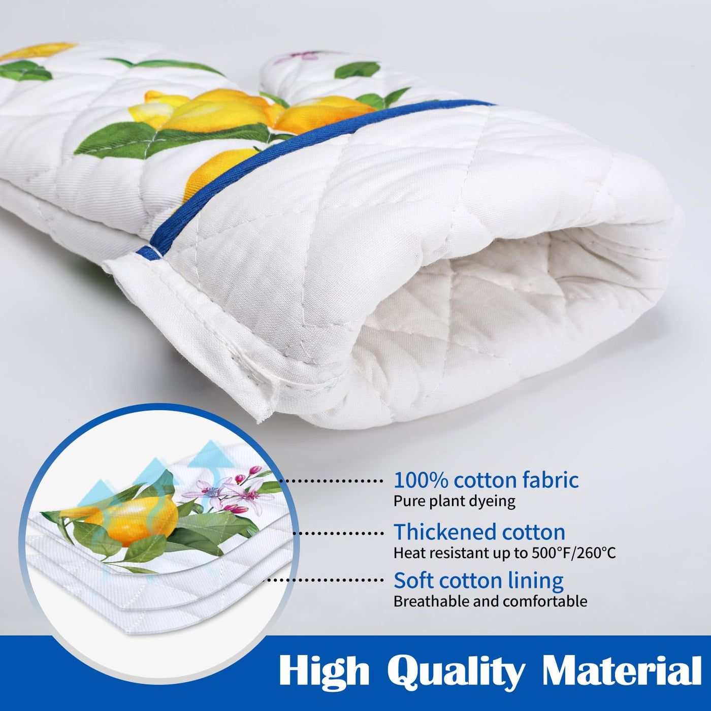 Arquiel Summer Lemon Oven Mitts And Pot Holders Sets 2Pcs, 100% Cotton Heat Resistant, Extra Long Oven Gloves Potholder For Kitc