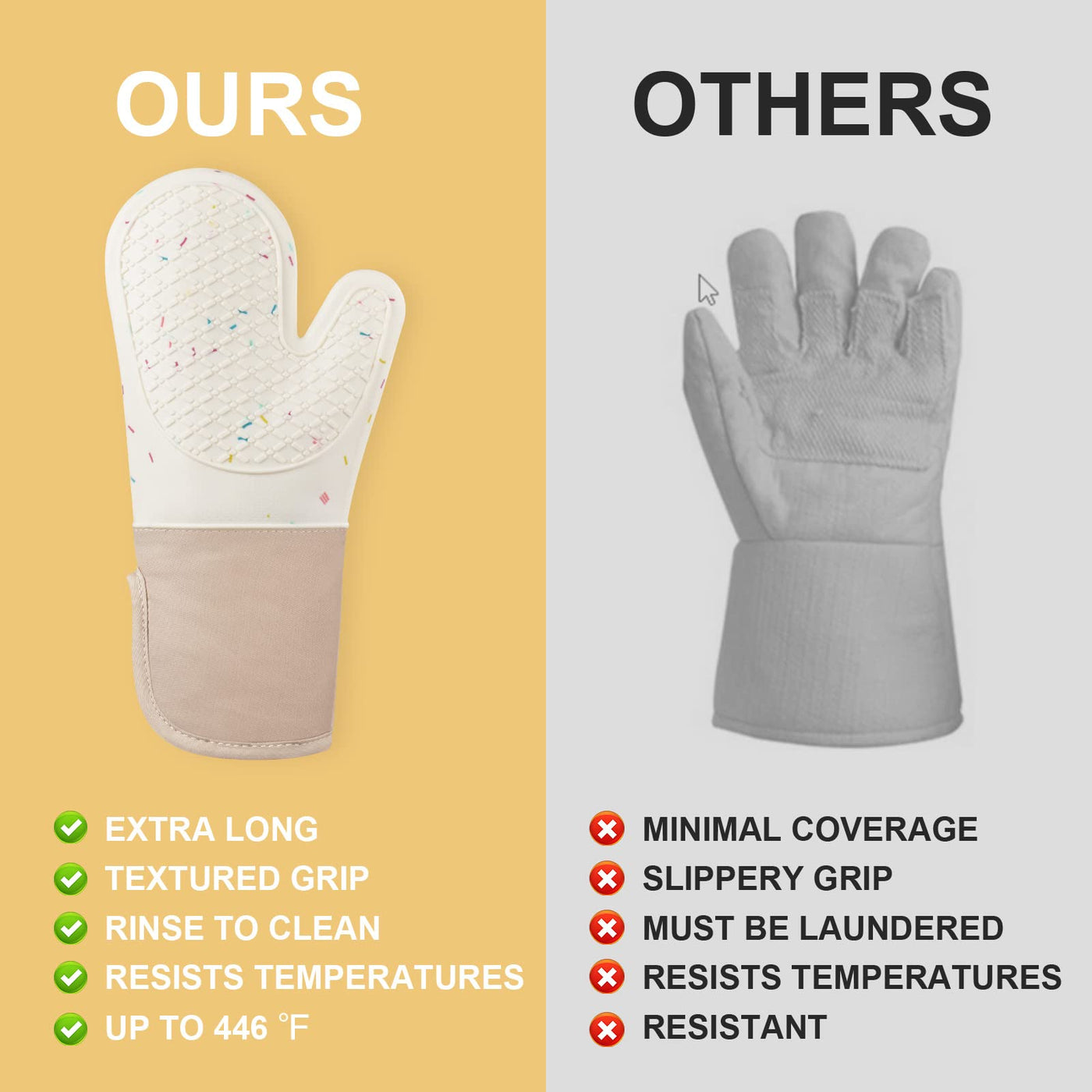- Q: Can I use these oven mitts for grilling and baking? A: Yes, these oven mitts are suitable for various cooking activities including grilling, baking, and everyday cooking.