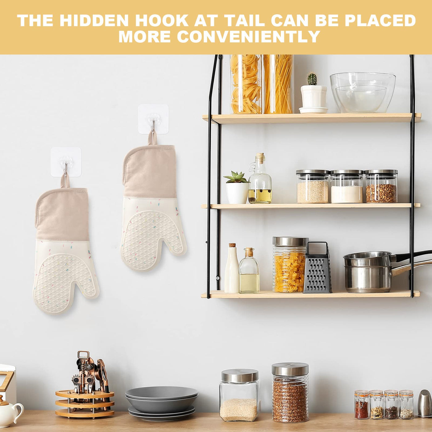- Q: What is included in the AUAUY Oven Mitt set? A: The set includes 2 oven mitts, 1 silicone pot holder, and 2 plastic hooks for easy storage.