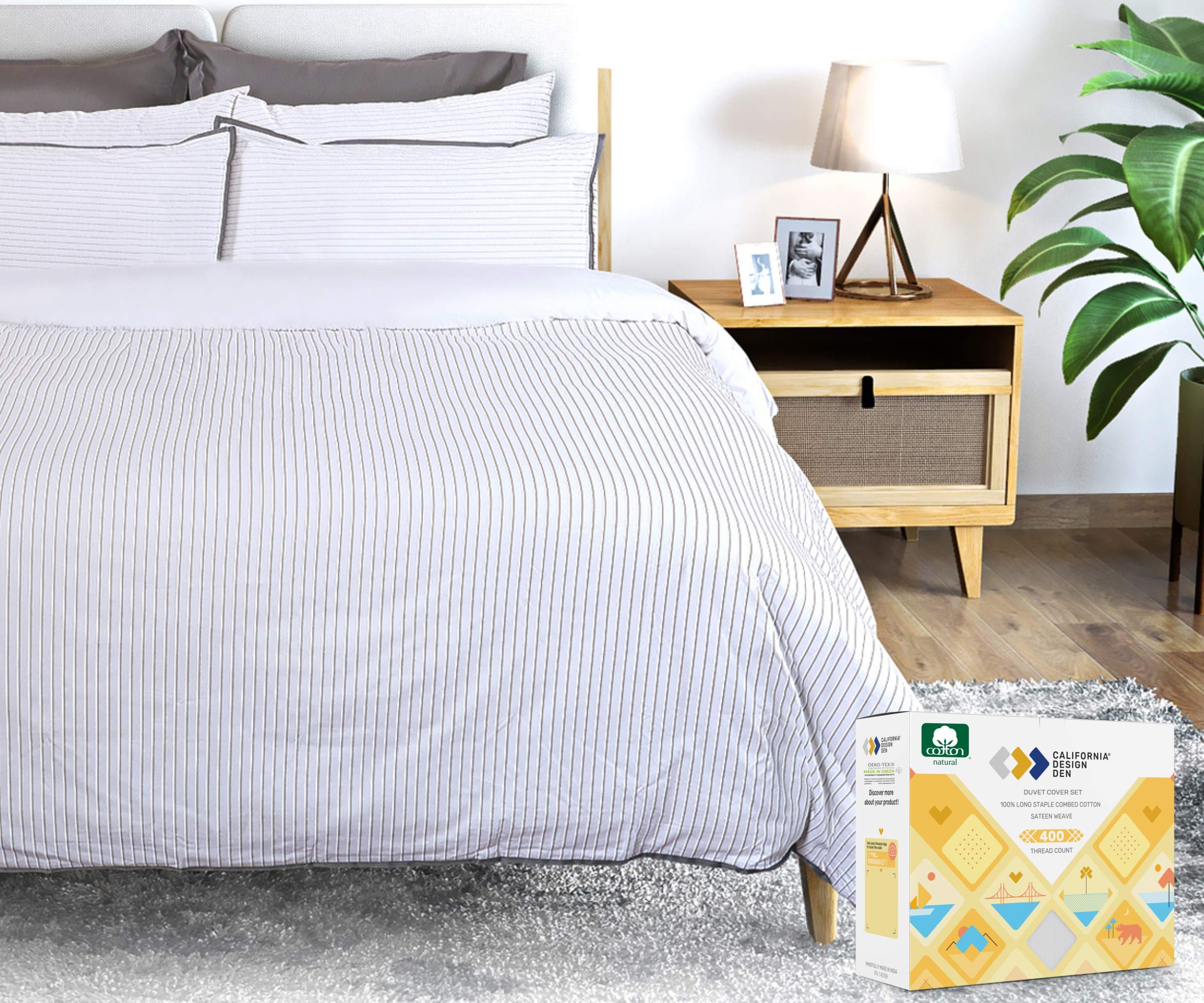 California Design Den 100 Cotton Striped Duvet Cover Set - Luxurious 400 Thread Count, Printed Bedding Set, Silky Sateen Weave,